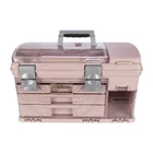 | an innovator in craft organization and storage with its line of fashion-forward, functional and affordable products Organization box perfect for storing small and medium Accessories and embellishments | great for battery storage, jewelry storage, small Parts storage, craft storage, sewing storage, paint storage & collectibles storage Three top-access removable racks | top-access storage with a clear duraview lid for visibility and identification of contents| duraview front door opens to reveal three drawers in the storage box Additional front storage compartment with duraview cover | includes one detachable stowaway utility box Product exterior dimensions: 21.25" L x 12.0" W x 12.0" H | made in the USA