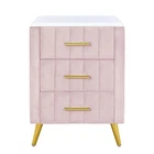 Features: Product Type:Nightstand Color:Beige/Gray/Pink Product Material:Plywood+Velvet+Metal Leg Style: Rose Gold Detail Product :16.3“x16.3”x21.8“ inches Internal Dimensions of Drawer:10.6”x3.9" Inches Base Height:4.5" Weight Capacity:Table:100LBS Drawer:35LBS Assembly Required:Yes Country of Origin:Malaysia 【Perfect Design】: It is modern and stylish, can decorate your room very well, and the colors are very beautiful, making it look fashionable. The bedside table is made of high-quality marble and plywood, and the golden handles and feet are made of metal, showing the fashion and luxury of the cabinet, and the robustness and durability. 【Dimensions】: 16.3 "x 16.3" x 21.8 "(L x W x H), the 3-drawer nightstand offers plenty of storage space for your books, glasses and personal items, making this nightstand your perfect bedroom companion.Load capacity: table :100lbs, drawer: 35lbs 【Versatile Use】: Upholstered velvet perfect for bedrooms, living rooms or reception rooms. Placed in different places, can be used to store different items, to solve your concerns about small space. 【Easy To Assemble And Clean】: This nightstand comes with all the hardware and tools you can put it together quickly and easily. The smooth surface is easy to clean and can be wiped clean with a clean damp cloth. 【Package Includes】: Nightstand only (excluding all decorations)offers quality assurance and lifelong professional customer service. If you have any questions, please feel free to contact us.