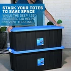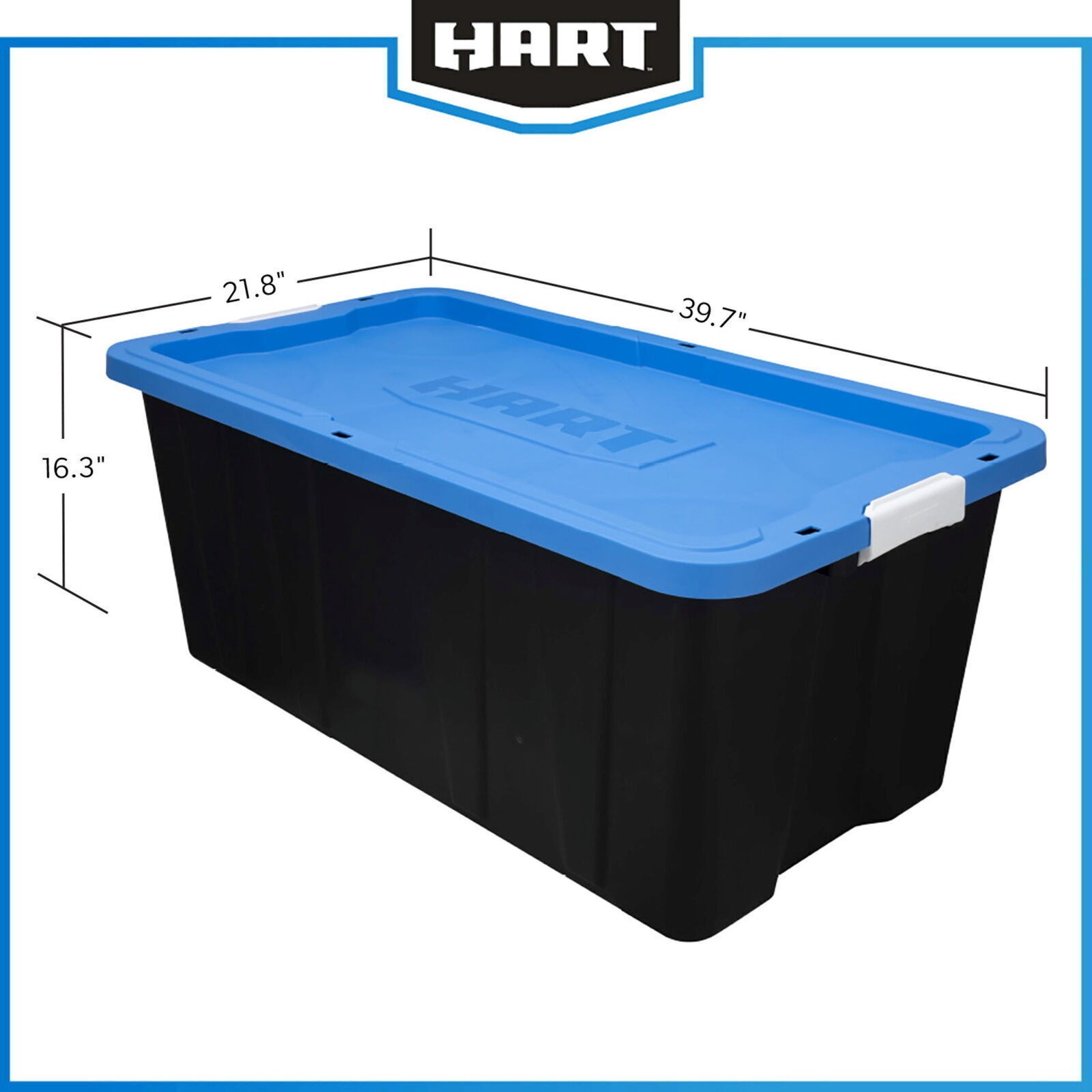 You may also like 45 Qt Plastic Storage Bins W/ Lids Stackable Clear Totes 4 Pack organization New 58.65 USD 61.74 USD Free shipping 5% off Heavy Duty 27 Gallon Stackable Plastic Storage Totes W/ Snap Lid Set of 4 New 72.44 USD 76.25 USD Free shipping 5% off Large Storage Bin 90 Quart Stackable Clear Plastic Container W/ Lid 2 Pack New 28.82 USD 30.34 USD Free shipping 5% off Large Wheeled Storage Bin Pack of 4 Underbed Container W/ Latch Lid & Clear Base 80.53 USD 84.77 USD Free shipping 5% off Stackable 12 Gallon Black/Red Snap Lid Storage Tote Home Organizer Box New 14.44 USD 15.2 USD Free shipping 5% off 41 Compartment Plastic Storage Organizer Drawers Tools Crafts Office Supplies US 36.73 USD 38.66 USD Free shipping 5% off 30 Drawer Small Parts Organizer Desktop Wall Mount Storage Cabinet Tool Craft US 31.54 USD 33.2 USD Free shipping 5% off 62 Qt Airtight Plastic Bin Storage Containers Stackable Tote w/Sealed Blue Lid 42.73 USD 44.98 USD Free shipping 5% off Clear Storage Bin 28 Qt Stackable Plastic Containers Snap-on Lid Pack of 10 New 70.44 USD 74.15 USD Free shipping 5% off 58Qt Clear Plastic Storage Bins Snap-On Lid Stackable Container Organizer 8 Pack 92.65 USD Free shipping Stackable Plastic Storage Bins W/ Lids 68Qt 6Pack Home Office Organization New 64.77 USD 68.18 USD Free shipping 5% off Set of 4 Stackable Clear Bins W/ Snap-on Lids Storage Organizers Household Use 51.74 USD 54.46 USD Free shipping 5% off The set of 3, HART 40 gallon plastic storage tote have a black base with a blue lid and provides you with an easy storage and organization solution to reduce clutter and increase space in your home. Made of extremely durable plastic (polypropylene), the strong rigid walls of the storage tote are stackable to maximize storage space and to stay sturdy when stacked. The deep 1 inch recessed lid design helps keep totes secure and prevent tipping when stacked. The tough plastic material protects your valuables and keepsakes from dust, dirt, bug, and water damage in a stylish way. The bold white latch grip handles make it easy to transport or use for moving valuable around. The large 40 gallon size is great when needing to store larger and bulkier items. For added measure, the storage tote includes 6 large holes around the edge of the tote to keep items safe using zip-ties or padlocks. Tough black plastic construction resists rust, dents, stains and peeling to ensure lasting use while protecting against pest, dust, pollen, and weather Stackable- Recessed lid design creates stability and reduce toppling when multiple units are stacked Latching Handles- Easy to open and close 2-point grip white latch handles keep your items safes from spilling or falling out Lockable Lid - Lid comes with 6 holes ideal for zip-ties or large enough for padlocks to keep your items safe and secure Exterior Dimensions - 39.7 IN W x 21.7 IN D x 16.3 IN H OR (100.8 cm x 55.1 cm x 41.4 cm) Easy to clean surface, Indoor or Outdoor use Sustainable - Made from recycled materials Set of 3 - Include s 3 black base and 3 blue lid Weight - 9.96 lbs HART Heavy-Duty Latching Black and Blue Storage Containers comes in additional sizes such as 5 Gallon, 12 Gallon, 17 Gallon, 27 Gallon, 40 Gallons and 50 Gallons Storage Ideas: Gardening supplies, Pet treats and supplies, Cleaning and household products, Holiday and seasonal items, Linens, Clothing, Shoes, Handbags, Toys, Games, Arts and Crafting supplies, sports equipment, Seasonal clothing, Perfect for attics, basement, garages, and sheds You may also like Tufted Bench Cushion 36in x 14in Waterproof Stain Resistant Indoor Outdoor New 117.74 USD 123.94 USD Free shipping 5% off Squirrel Proof Bird Feeders 2 Pack Easy Assembly Hanging Bird Attractant Outdoor 32.38 USD 34.08 USD Free shipping 5% off LED Alarm Clock Extra Large Display Snooze Brightness Control Battery Backup New 25.9 USD 27.26 USD Free shipping 5% off Wild Salmon Garden Greens Wet Cat Food 3oz 24 Pack Savory Gravy Delight New 35.27 USD 37.13 USD Free shipping 5% off Hydroponic 39W T5HO Indoor Plant Grow Light Fixture W/ NanoTech Reflector New 78.02 USD 82.13 USD Free shipping 5% off Durable Hardside Spinner Carry on Luggage Travel Suitcase 4 Wheels W/zipper Teal 50.63 USD 53.3 USD Free shipping 5% off MagicBag Space Saver Storage Combo 8 Bags Airtight Seal Reusable XL/L/M Sizes US 29.4 USD 30.95 USD Free shipping 5% off Mini Fridge One Door Energy Efficient Reversible Shelves Office Dorm Adjustable 173.64 USD 182.78 USD Free shipping 5% off XL Space Saver Vacuum Storage Bags 8 pack Electric Pump Airtight Design Clear 45.21 USD 47.59 USD Free shipping 5% off 2 Pack Emergency Fire Blanket 40” Flame-Resistant Blankets Fiberglass for Home 29.4 USD 30.95 USD Free shipping 5% off Funny Coffee Mug Unique Lovely Pink Marble Texture Ceramic W/ Handle Gift Pack 17.65 USD 18.58 USD Free shipping 5% off 8V Cordless Drill Tool Set with Power Drill 64PCS 3/8" Keyless Chuck US 75.93 USD Free shipping