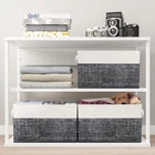 Premium Fabric: The storage bins are made of stiff cardboard on the bottom and all sides walls so that the organization bins stand on their own, even when empty; sturdy materials ensure that these storage containers are strong and long-lasting Spacious Capacity: Fabtotes storage basket measures 15" x 10" x 9.5"; this large size enables you to store a wide variety of items to keep your home tidy and organized Reinforced Handle: The bins for organization come with two sturdy rope handles made of soft rope to easily pull or lift the bin.; the organizer bin is stitched with a metal ring where the handle is connected to ensure durability and tear resistance Collapsible Design: The fabric storage cubes can be folded flat when not in use to save space or transport; fabric baskets are easy to clean, simply dust with a soft dry cloth Multi-Purpose: The basket organizer is a perfect option for organizing toys, magazines & books, CDs, clothes & towels; the collapsible storage cubes can be easily stored in closets, drawers, shelves, etc