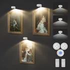 [Battery and Remote Control Picture Lights]Operated by 3 AA batteries(not included),More than 50 hours lifespan.Come with remote control,you can set the picture frame light from a distance with the handy remote control. [3 Lighting Modes & Dimmable Brightness Painting Light]3 lighting modes (warm white, natural white, cool white) to match your mood or artwork.Personalize your room with dimmable brightness levels. [Auto OFF Timer Art Lights for Paintings]The easy-to-use timer function that allows you to set the wall light to automatically turn off after 15, 30, 60 or 120 minutes. [OCCATIONS] Suitable for different occasions, such as decorating photo frames, portraits,painting ,canvas, artwork,darts ,wall display illuminating, wall decor.The art light is also good chioce for home, living room, bedroom, room decoration lighting. [EASY INSTALL]The puck lights comes with bracket and can be fixed to the wall with screws or 3M adhesive easily.Also can be adsorbed on a variety of iron items. Product Description Battery Operated Picture Lights with Remote This set of 3 art display light battery operated with remote suitable for lighting small-sized photo frames. For example 4x6,5x8, 8x8, 8x10, 8x12, 9x12,10x12,10x14 inches. It is perfect for illuminating any piece of art or portrait in your home. Key Features: Magnetic Structure: can be attracted to any iron,easy to use. Two Remote Control: can be used in multiple places at the same time. Dimmable Brightness: The picture lights are also dimmable, allowing you to create the perfect ambience for any piece of art or photo. Battery Powered: The black light for paintings powered by 3 AA batteries (not included),easy to use. Widely Use Occasions: You can use it as battery operated picture lights for paintings,battery operated wall lights,battery operated spotlight,led dimmable spotlight ,light for display,lights for pictures on wall,wireless art lighting with remote,portrait led light,light for wall picture . So, if you're looking for a way to showcase your favorite artwork or photos, then the 3-Pack Wireless Picture Lights is the perfect solution! Wireless picture lights&LED puck lights for pictures on wall Make your room warm and bright! 3-Pack battery powered picture lights with remote. Two switch modes:remote control&manual touch. Short press to change color. Long press to adjust brightness. You can set 15, 30, 60, 120 minutes for the photo light by remote control. Specifications: Light source color: 3000K warm white 4000K neutral white 6000K cold white Powered by 3AA batteries( batteries not included) Timing off function 15/30/60 or 120 minutes Dimmable brightness 10%-100% Easy to install Package Included: 3 x Battery operated puck lights (batteries not included) 2 x remote control 3 x mounting brackets 3 x screws