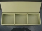 3 part divided wood box. Dresser, jewelry, organizer box. Rectangular shape. Lid on hinge. Floral design on top of lid 11 3/4" by 3 3/4" height 1 7/8" The overall condition of the box is near excellent, without chip or crack on the wood. No visible scratch or stain. The 2 dividers are removable. Please, look at the pictures for detail not mentioned in the description and condition as well. If you have any question, please, do not hesitate to contact me before purchase. Cost of shipping with insurance. POLICY Please, take few minutes to read our policy. We ship USPS or Fedex with insurance and/or full coverage to confirmed address ONLY and within 1 business day of cleared payment from e-bay. All items are packed very safely with lots of bubble wrap to insure safe delivery. We usually do not accept returns, but if an item is grossly misrepresented in the description or there is a problem with your order, please, contact us as soon as possible and we'll work with you. If a buyer still wish to return an item bought from us, the buyer must contact us in the 3 days following the confirmed delivery and is responsible of return shipping cost. Refund will be made only if the item is received in the same condition it was shipped. For items sold "free shipping", refund minus original shipping cost will be made. We sell used and vintage items. We are no expert, but we try our best to describe and picture the condition of all items. Dimensions are approximate and true color may vary from one device to another. Please, ask all and any question you may think of before purchase. We usually respond the same day. When you'll receive your order, if there's any problem, please, contact us before leaving negative feedback. We'll work with you. Our main goal is your satisfaction. Thank you for looking. Tent