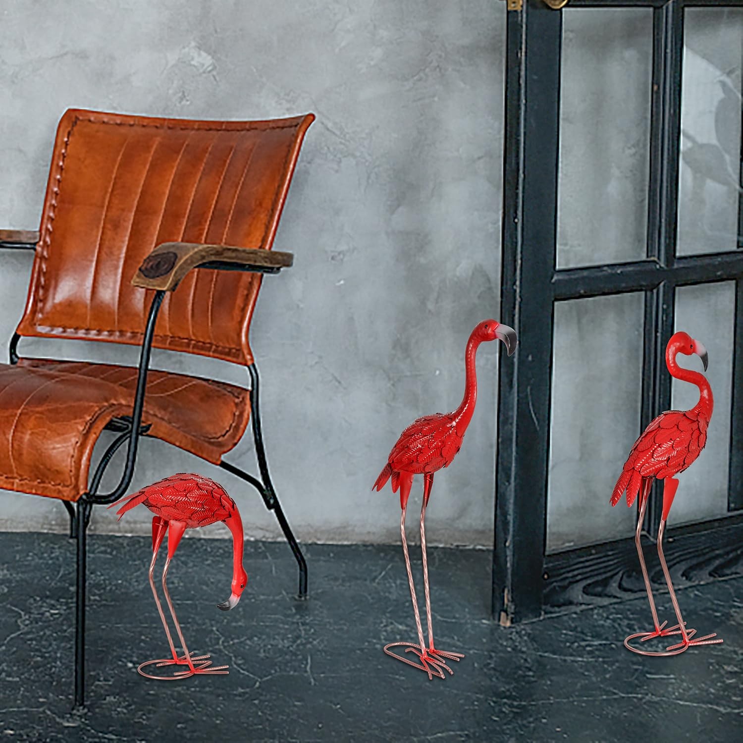 These flamingo garden statues are absolutely adorable! The bright red color pops in my yard, and the three different poses add fun variety. The metal feels sturdy, and they've held up well against wind and rain. Perfect size—big enough to stand out but not overwhelming. Easy to push into the ground, and they look so cute scattered around the garden. Neighbors keep complimenting them! Definitely worth it for anyone who loves playful outdoor decor.