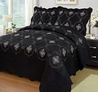 Return Policy Fast Delivery Trusted seller 3-Piece Embroidery Quilt Set Lightweight Bedspread Set Coverlet Set Emma (Black, California King) Product Description 100% Polyester GOOD ABSORBENCY & PERMEABILITY: 100% Polyester Fabric. Chic Design: This quilted bedspread showcases elegant symmetrical embroidery with vibrant, colorful accents. The rich colors contrast beautifully with the intricate stitching, adding a luxurious touch to your bedroom. ACTIVE PRINTING: The 3-piece Quilted Embroidery Quilts Bedspread uses pure natural mineral or vegetable dyes, which feature high color fastness and fine patterns that are non-fading. EASY CARE: Machine Wash in Cold Water with Similar Colors. Tumble Dry on Low Heat. Do Not Bleach, no Ironing. WHAT YOU GET: Queen: 1PC Quilt(100" X 106") 2PC Pillow Shams(20" X 26") OR King: 1PC Quilt(118" X 106") 2PC Pillow Shams(20" X 36"). Shipping Returns Payment Shipping Shipping is FREE to all addresses other than APO/PO boxes in the lower 48 states. All our stock ships from US-based warehouses. Shipped via USPS or UPS (depending on location and package weight) Unless stated otherwise, all orders will ship within 24-72 hours of your payment being processed. Check our feedback to see the great reviews of FAST shipping we offer. Returns Seller does not accept returns Payment We currently accept payment via eBay managed payments only. Once payment is cleared, we will dispatch your shipment within 1-3 business days. Please refer to the "Shipping" tab for more information regarding shipping speed to your destination.