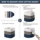 3-pack storage baskets are made of natural cotton ropes and water hyacinth which has no chemical smell, soft and also has no sharp edges. They are hand-woven to be durable and sturdy, ensuring years of use. Soft & Safe Materials: Our 3-pack storage baskets are made of natural cotton ropes and water hyacinth which has no chemical smell, soft and also has no sharp edges. They are hand-woven to be durable and sturdy, ensuring years of use. Special Design: The special design of combining the premium thick cotton ropes with water hyacinth not only can match any other interior decor but also provides a practical solution for organizing your home. Storage cube baskets have a variety of rich colors for you to choose from to match your personal style. Multi-Purpose Woven Basket :11 X 10.5 X 10.5 in 3-pack cube baskets are perfect for baby nursery items, toys, clothing, towels, books, magazines etc. Use alone as a decorative basket or with a bookshelf, cabinet, closet , shelves. With this basket, the home will be neat and tidy. Convenient Handles:Each basket for organizing has 2 sturdy & soft handles. It is convenient for moving and even if you carry items of high weight, do not hurt your hands. Built-in handle design makes your cube rope basket more beautiful. Tips:Your woven storage basket will arrive folded. It will regain its elegant shape by filling it with towels or blankets. If desired, you can also iron the basket to remove its creases. When not in use, the squarl basket can be folded into a flat shape for convenient storage.