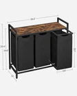 [3 Compartments for Divided Storage] The laundry hamper has a total capacity of 30 gallons (114L), with each liner holding 10 gallons (38L). Its 3-compartment design enables you to organize your laundry by type and separate light laundry from dark ones [Laundry Hamper with Shelf] The shelf of this laundry basket provides extra space to organize detergents or toiletries, while its slatted design allows air to flow through for good ventilation, keeping your laundry odor-free [Pull-Out and Removable Liners] Each liner is equipped with a plastic bottom panel to prevent sagging, and thanks to the hook-and-loop fastener, you can effortlessly pull out and remove these liners to easily transport them to the washing machine [Robust & Stable] This laundry sorter features a sturdy 0.8” steel tube frame and MDF panel, supporting up to 44 lb on its top shelf. Moreover, each liner is crafted from water-repellent Oxford fabric, while the four adjustable feet provide added stability [Versatile] This versatile laundry hamper fits seamlessly into any room, whether it's your laundry room, bathroom, or bedroom. Should there be any water on the shelf during use, immediately wipe it off with a dry cloth