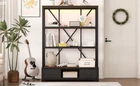 3-Shelf Metal Bookcase w/Drawers Bookshelf Open Storage Display for Home Office Features [Ample Storage] This bookshelf features an open design that blends the charm of minimalist and vintage furniture styles and provides ample space to display and store your books, decorations, plants and other daily items. [multi-purpose] The bookcase features 3 open shelves on the top, 2 non-woven drawers and an open shelving area on the bottom to organize your favorite reading material and collectibles; it can also be placed in your living room as a stylish shelf to display your framed family photos and potted plants. [Large Capacity] This bookshelf is made of high-density fiberboard, sturdy and durable, with a thick panel surface that is smooth and waterproof, convenient for daily cleaning, saving your mind and effort, providing you with storage needs and convenient life [Anti-tipping device] The product is equipped with an anti-tipping design that can be screwed to the wall to prevent tipping. In addition, each shelf features an upright design that prevents items from falling off. [Easy to assemble] To make assembling the bookshelf as easy as possible, we provide clear and detailed instructions and numbered parts. You can check the manual first and then follow the steps. Description Description The open design, a charming blend of minimalist and vintage furniture styles, provides plenty of space to display and store books, decorations, plants and other everyday items. 4 open shelving areas and 2 drawers for organizing your books or ornaments, etc. Description & Dimensions Product Type: Bookcase Overall Product Dimension: 51.18"L x15.75 "W x 66.93"H Color Walnut Color Numbers of Package 1 Overall Product Weight 79.37LBS Weight Capacity 80 lbs. weight capacity per shelf Product Material Metal+MDF Country of Origin China Note All the pictures are taken by actual samples, slight chromatic aberration may occur due to lighting or display