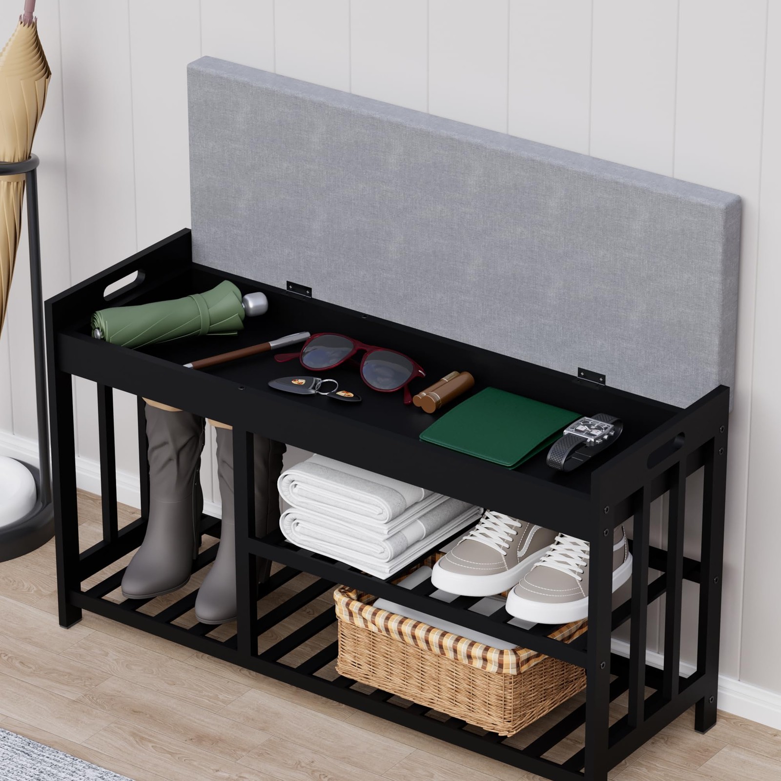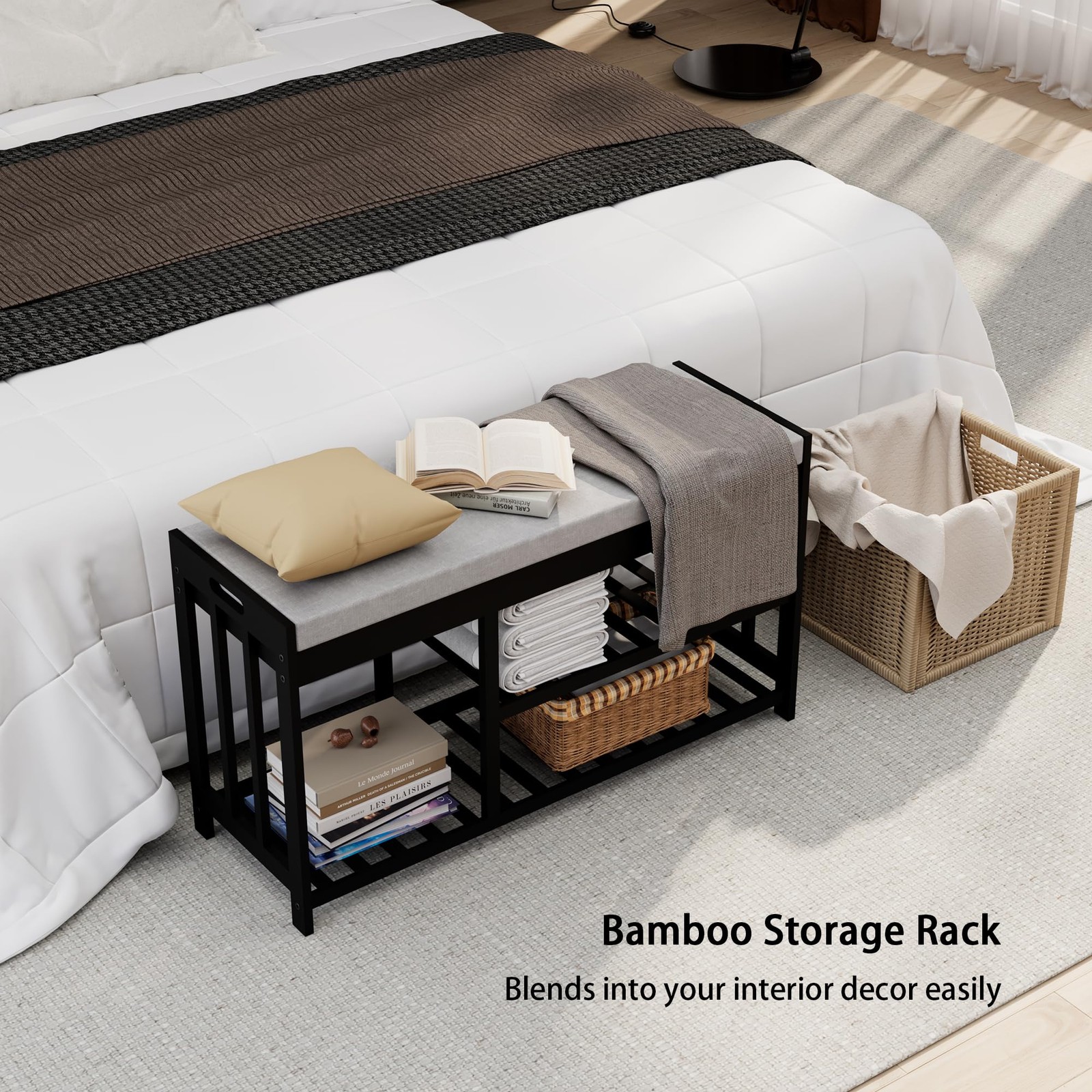 Elevate your entryway with this sleek and practical 3-Tier Bamboo Shoe Rack Bench. Crafted from durable bamboo, it offers ample storage for shoes, while doubling as a convenient bench. The three tiers provide organized storage for up to 9 pairs of shoes, keeping your entryway clutter-free. Measuring 23.6 inches wide, 11.8 inches deep, and 17.7 inches tall, it's the perfect size for small spaces like entryways, bathrooms, or bedrooms. With its natural bamboo finish, this shoe rack bench adds a touch of warmth and style to any room. Easy to assemble and maintain, it's a versatile addition to your home organization. [Cozy Comfort] Take off your shoes, and let the day's fatigue stop here on this bamboo shoe bench, inviting you to relax and unwind. [Robust Stability] Engineered for enduring support, our shoe rack bench ensures steadfast sturdiness, confidentently accommdating up to 350lbs with ease. [Ultimate Comfort] Shoe rack bench High-density foam padding ensures a cozy experience. [Space-Saving Efficiency] Streamline your space with our compact rack, efficiently storing your footwear without overwhelming your home. From heels to boots, it effortlessly adapts to your collection. [Effortless Care] Experience hassle-free setup and maintenance with our shoe rack bench, designed for easy assembly and simple upkeep, ensuring convenience at every step. Just wipe clean with a damp cloth.
