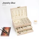 This modern jewelry holder looks nice whether displayed on the dresser of your bedroom or your cloakroom to organize your pins, necklaces, rings, bracelets, and other accessories. 9 necklace hooks, 3 levels-2 drawer design is enough to keep your jewelry neatly organized. Almost all your different size jewelry and accessories. 1st level has various areas that can hold earrings, rings, and bracelets. 2nd level has 2 kinds of grids for watches and pins. 3rd level is empty and can store other accessories. Jewelry box is made of premium engineered wood and is not easy to deform. With durable PU leather and soft imitation fur lining. Perfect for protecting your beloved jewelry from scratches and damage. Large-capacity size (L x W x H): 9.84" x 6.61 "x 5.27". Perfect for a Christmas Gift. Whether for a friend or your lover, this jewelry organizer will support any holiday or birthday with an unforgettable memory. Fill it with new jewelry as a lovely surprise and make it a one-of-a-kind gift.