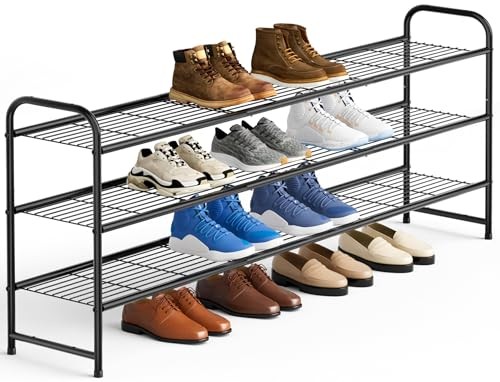 Return Policy Fast Delivery Trusted seller 3-Tier Long Shoe Rack for Closet Metal Shoe Organizer for Entryway, Wide Stackable Shoe Storage Shelf with Sturdy Wire Grid for Closet Floor, Bedroom, Black Product Description 【Holds 24 Pairs of Shoes】 Longer 3 tiers shoe organizer for closet, can store 24 pairs of shoes, easy to hold up men's tennis shoes, sneakers, women boots, etc. The extra bottom space is enough to place daily wear flats, slippers. The large capacity shoe rack for entryway size is: 43"W x 11.4"D x 24.4"H; 【Heavy Duty Metal Shelf】 This men shoe rack are very sturdy that does not rust or deform, sturdy enough to fill the entire black shoe rack with shoes. Load bearing capacity is better than other fabric shoe racks for bedroom closet, and can be used for a long time; 【Display Boots Easily】 Unlike other 3 tier shoe rack that can only store flat shoes, our wide shoe rack organizer fit boots well, the height of shelf distance is 8 inches, roomy space to keep shoes shape, even the snow boots and rain boots can be stored easily; 【Stackable & Adjustable】 2 sets can be stacked into a 6-tier stackable shoe rack. You can take out a layer to store high boots. Make full use of the vertical space and make your closet and floor no longer littered with shoes. The shoe storage organizer can be installed in short time, user-friendly and space saver; 【Meet Multiple Needs】 The metal shoe rack also can be used in more places, such as living room, bedroom, entryway, garage, dorm, apartment, mudroom etc. This black shoe organizer is very suitable for family storage. Shipping Returns Payment Shipping Shipping is FREE to all addresses other than APO/PO boxes in the lower 48 states. All our stock ships from US-based warehouses. Shipped via USPS or UPS (depending on location and package weight) Unless stated otherwise, all orders will ship within 24-72 hours of your payment being processed. Check our feedback to see the great reviews of FAST shipping we offer. Returns Seller does not accept returns Payment We currently accept payment via eBay managed payments only. Once payment is cleared, we will dispatch your shipment within 1-3 business days. Please refer to the "Shipping" tab for more information regarding shipping speed to your destination.