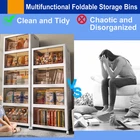 Storage Bin,Storage Box,Plastic Storage Bins Organizer,storage bins with lids,stackable storage bins storage cabinet,storage and organization,storage organizer bins,plastic storage bins,stackable storage bins open front,collapsible storage bins . It's a must have for household, an ideal storage bin that keeps your home neat and tidy. The folding storage box is lager capacity, odorless, semi-transparent, thickness and strong load. Great for kitchen, closet, office, bathroom, dorm room, laundry, car etc. 【Strict Quality Control】 Storage Bins are manufactured with strict quality control standards. Each Storage Bin and its components undergo extensive testing for optimal performance and to pass laboratory performance tests. All of this is just to give you a better shopping experience. 💎【Multipurpose】Each layer storage box measures 21.7in*13.6in*11.4in (LxWxH). These storage boxes can be used to store personal items such as clothes, office supplies, art supplies, toys, snacks and more. A good storage organizer for bedroom, living room, kitchen, study or office, classroom, etc. 💎【Premium & Durable】 Our storage containers are made of durable and high-quality PP. More odorless, durable, sturdier and safer storage trunk. Once purchase the cube storage for a long-term use. 💎【Movable Storage Containers】There are 4 wheels at the bottom of the storage box, which can be easily moved when needed. In addition, the storage organizer's 2 wheels have buckles that keep the wheel in place to prevent it from moving. 💎【Collapsible & Tools-Free】The stackable storage bins with lids can be easily assembled without tools, just need few seconds to snap pieces together. When not in use, the storage boxes can be folded to place in a small gap in the car or room. 💎【Clearly Find What You Need】The front lid of each storage bin is translucent, you can see the items stored inside. You can easily identify the items stored inside. No more worry about finding missing tools, toys or stationeries. 💎【Clearly Doors with Magnetic】The front door of the storage drawers has a built-in magnetic buckle to ensure that the door does not open on its own.