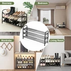 1 Adjustable Shoe Rack with 5-Minute Assembly No tools required! Set up this sturdy shoe rack in under 5 minutes. Its simple design and numbered parts ensure hassle-free installation, perfect for busy households Expandable Shoe Rack for Space Optimization This 3-tier shoe rack effortlessly expands from 16" to 33", adapting to your space needs. Store 6 pairs (2 per tier) when compact or 12 pairs (4 per tier) when fully extended—ideal for closets, entryways, and tight corners Heavy-Duty Metal Construction Built with thickened metal tubes, each tier supports up to 15 lbs. Durable and rust-resistant, this shoe rack for closet or entryway stays stable even when fully loaded Versatile Closet Shoe Rack & Entryway Organizer Designed for versatility, this rack fits seamlessly in closets, entryways, garages, or dorm rooms. Its slim profile maximizes vertical storage while keeping shoes tidy and accessible Customizable Storage for Every Home Expand, adjust, and stack to matchyour shoe collection. From sandals to boots, this shoe rack for entryway orcloset offers a sleek, modern solution for clutter-free living