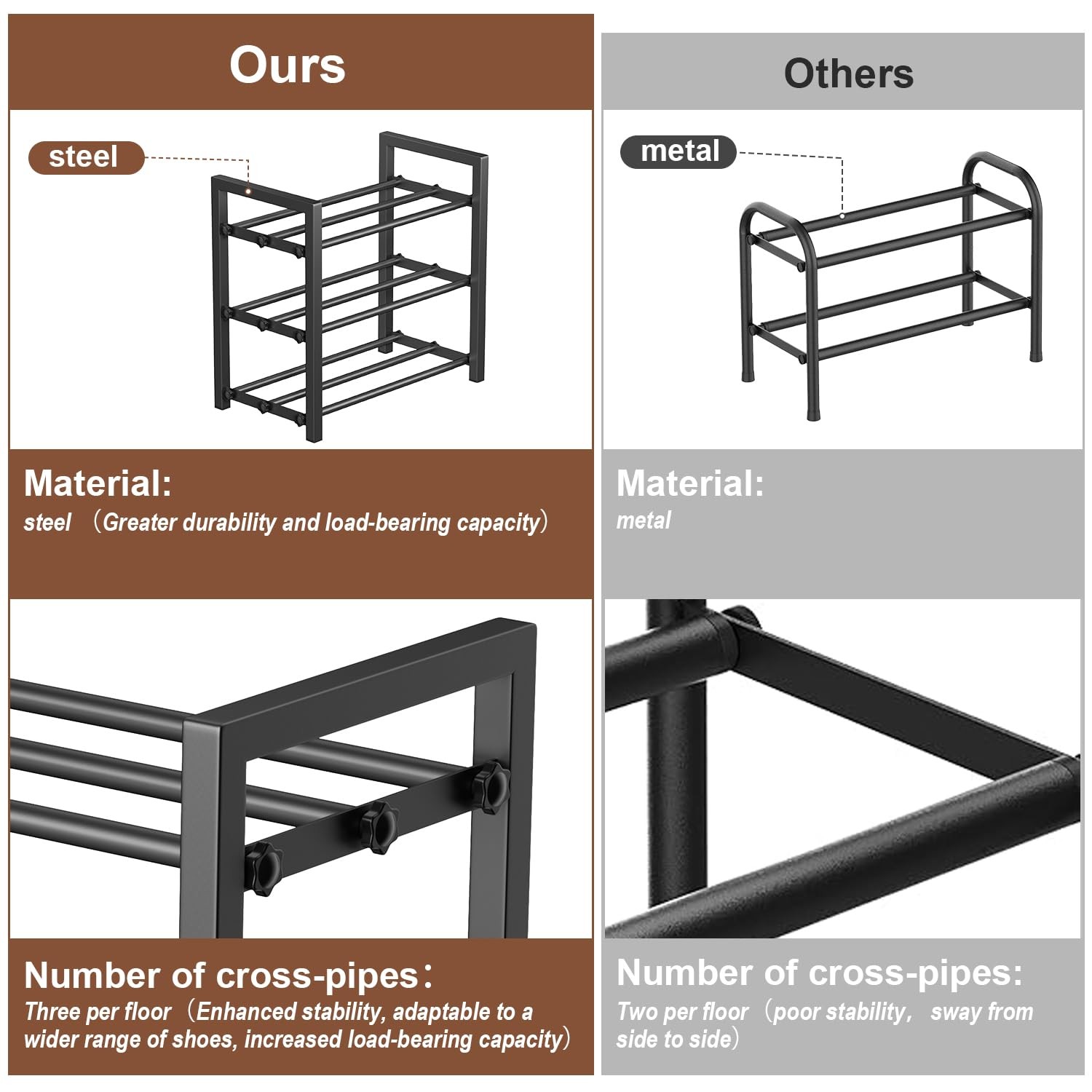 shoe rack π Sturdy 3-Tube Design for Enhanced Shoe Storage Features three reinforced middle tubes (vs competitors' two) to securely hold up to more pairs of shoes per tier without sagging. The robust square side tubes + round crossbar structure ensures 150lbs weight capacity β perfect for heavy boots or multiple sneakers! β¨ Space-Saving & Versatile Shoe Organizer Slim profile fits tight spaces: ideal for bedroom corners, closet shelves, or cramped entryways. Tuck neatly beside dressers or under hanging clothes. Maximize unused areas while keeping footwear dust-free and accessible! π Anti-Slip & Scratch-Free Round Tubes Thick rounded middle bars prevent shoes from snagging (unlike sharp-edged designs). Non-slip rubber end-caps grip floors securely while protecting surfaces β safe for hardwood, tile, or carpet in closets or doorways. π Adjustable Width Shoe Rack for Doorway/Closet Expandable from 17" to 31" to fit any doorway, apartment entry, or irregular closet space. No tools needed! Customize width in seconds to hold everything from kids' sandals to adult work boots. π§© Easy Assembly & Stackable Design Build your dream shoe organizer in minutes! Stack multiple units vertically for closets or horizontally for bedrooms. Interlocking square frames + reinforced joints create rock-solid stability β no wobbles, ever.