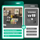 3-Tier Pull Down Spice Rack,Large Capacity Kitchen Storage Shelf Organizer Heightened Guardrail & Enlarged Mounting Plate for Cabinet/Pantry Holds Seasoning Jars Bottles Shakers Retractable Organizer About this item Round Edges: The edges of the rack adopt a round design, which greatly reduces the risk of accidental injury to others Saving Space: The compact size design (14.6*7.9*7.9in) fully utilizes the internal space of the cabinet, freeing up valuable kitchen countertop space and making the kitchen more spacious Strong Load Capacity: It is made of high-quality iron featuring 11 lbs strong load-bearing capacity, even when storing heavy bottles, it can remain stable and durable User-friendly Design: With buffer lifting design, it allows you to easily pull down and access the items stored at high places without the need to worry about injury or item damage caused by sudden drops, making it more comfortable to use Enlarged Mounting Plate: The enlarged mounting plate (3.2*1.6in) enhances overall stability, preventing shaking or tilting even when multiple bottles are placed Product Description Details Enlarged Mounting Plate: The enlarged mounting plate (3.2*1.6in) enhances overall stability, preventing shaking or tilting even when multiple bottles are placed Heightened Guardrail: It effectively prevents bottles from falling off, ensuring safe use. Round Edges: The edges of the rack adopt a round design, which greatly reduces the risk of accidental injury to others. Hollowed Base: It can quickly drain water to prevent the bottom of the bottle from getting damp, keeping the bottle dry and clean. Application It can be used in kitchens, bedrooms, offices, etc., and used to place spice bottles, snacks, cosmetics, glasses, pens, keys, crafts, toys, small potted plants, etc. Specification Material: Iron Process: Plastic Spraying Color: Black Mounting Type: Cabinet-mounted Shape: Rectangular Number of Tiers: 3 Overall Load Capacity: 5kg/11 lbs Applicable Cabinet Size (Without Lock): 38*23*22cm/15*9.1*8.7in Applicable Bottle Size: Diameter<5.5cm/2.2in, Height<20cm/7.9in Mounting Plate Size: 8*4cm/3.2*1.6in Tier Size: 33*6*7cm/13*2.4*2.8in Product Size: 37*20*20cm/14.6*7.9*7.9in Package Size: 41*34.5*15.5cm/16.1*13.6*6.1in Net Weight: 1.2kg/2.7lbs Gross Weight: 1.9kg/4.2lbs Package Included 1* Spice Rack 2* Mounting Plates 6* Screws Notes 1. Please make sure to drill holes for installation, and do not install with nail glue. When you tighten the screws, try to flatten and stabilize the mounting plate as firmly as possible, and then pull it down after it is completely fixed. Please allow the slight color difference caused by the shooting light and 1-3cm error due to manual measurement, and make sure you do not mind before ordering.