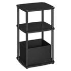 【SUPERFAST TOOLLESS ASSEMBLY】Set up this end table in just about 5 minutes—no tools required. By connecting the tubes with double-ended screws, you can quickly set up all the tiers. It's as easy as building blocks! 【AMPLE STORAGE】Boasting 3 shelves and an additional fabric basket, this side table offers ample storage space—an ideal storage solution for your odds and ends! 【SPACE-SAVING SOLUTION】Designed for narrow spaces, this 11.8"D x 13.4"W x 22.8"H nightstand is a practical storage solution for vases, lamps, cups, books, and other items in compact living rooms or bedrooms 【ROBUST AND LONG-LASTING】Sturdily crafted from premium particleboard and robust 0.7" dia. steel tubes, this bedside table is durable enough to withstand the test of time 【MODERN CHARM】Featuring clean lines, rectangular shelves, and a minimalist design, this ebony black side table exudes a modern charm that complements various decors