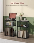 Are you tired of having your vinyl collection scattered all over the place? Meet the record player table, the practical and elegant solution to keep your records and player organized in style. Highlights of This Record Player Stand at a Glance: - 3-Tier Design: The top holds your record player, while 2 open shelves up to 100 albums. - Versatile Use: Doubles as an end table for your living room, bedroom, or study. - Sturdy Build: Made with particleboard panels and a steel frame for durability. - Rustic Charm: This side table's industrial look and clean lines complement your home decor. - Details Matter: Dense mesh prevents items from falling, and the U-shaped dividers allow for categorized storage. Specifications: - Color: Ebony Black - Product Size: 11.8"D x 16.9"W x 27.1"H (30 x 43 x 69 cm) - Material: Particleboard, Steel - Product Weight: 13.4 lb (6.1 kg) - Max. Static Load Capacity of the Top: 44 lb (20 kg) - Max. Static Load Capacity of the Middle Shelf: 22 lb (10 kg) - Max. Static Load Capacity of the Bottom Shelf: 44 lb (20 kg) Package Contents: - 1 x Record Player Stand - 1 x Accessory Kit - 1 x Instructions Notes: - Do not sit on the side table. 【3-TIER DESIGN】This bedside table features a tabletop for your record player and 2 open shelves that can hold up to 100 albums. Enjoy a tidy and organized music area 【EASY ASSEMBLY】This record player stand comes with detailed instructions and labeled parts, making it a breeze to assemble in just 6 simple steps 【VERSATILE USE】This turntable stand doubles as a side table, making it a versatile addition to your living room, bedroom, or study. Enjoy your afternoon tea or daily essentials with ease 【STURDY AND STYLISH】Crafted from robust particleboard and steel, this couch table is built to last. The ebony black color creates an industrial look, adding a touch of vintage charm to your decor 【THOUGHTFUL DETAILS】The dense mesh prevents items from falling off, while the removable U-shaped dividers at the bottom allow you to customize your storage space to fit your needs