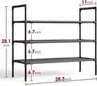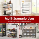 Shoe Rack - X-LARGE Shoe Organizer 3-Tier Shoe Storage Rack Sturdy Shoe Rack NEW Designed with tiered levels for organized storage, these shoe shelves offer a versatile solution for your footwear. Each tier provides ample room for various shoe styles, while the heightened and open floor space below is perfect for additional pairs. The 6.7" space between each shoe shelf accommodates a range of footwear, from sneakers to heels, ensuring that your shoes are organized stored, and easily accessible. Crafted with rust-proof coated steel tubes and non-woven fabric, this shoe organizer for closet floor is made to last. The sturdy materials prevent deformation over time and resist damage from regular use. The strong metal frame keeps the shoe rack organizer stable even in a full load of shoes. Measuring just 11" deep, this 3-tier rack takes up minimal floor space while still offering ample storage. The minimalist frame design is easy to move around and position in tight spaces. This closet shoe organizer features a stackable design that is perfect for customizing storage to fit your space. You can pile up 2 or more racks to organize your shoes, bags, sboxes, and more in a limited space. The compact shoes organizer fits perfectly in small home spaces like garages, walk-in closets, entryways, and living rooms. Use these versatile shoe racks to maximize your tight storage areas.