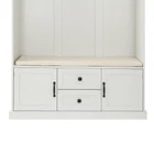 Product Features A hall tree which decorate your entryway and organize your coat, shoes and any other belongings, make your entryway tidy and become a good helper for your home life. Three open storage shelves, 3 metal double hooks, with shoes bench and shoes storage space in the bottom, maximize storage function of your entryway,avoid clutter in the home,at the same time save your space of your home. Including assembly manual and all necessary hardware and fasteners. Components are pre drilled and pre cut for assembly. Description Classic details give our Storage Locker a traditional look, but clean lines and a modern finish bring this hall tree into the now. Generous, sweeping crown molding accents the top of the case; 3-open cubbies lie below it, awaiting your display items, books, accessories and more. The open area beneath the cubbies features elegant beaded-board paneling, 3-double hooks for coats and bags, and a comfortable seat with cushion. The grand finale of this mudroom storage piece, 2-drawers and 2-doors that allow you to store away even more necessitie. Weights & Dimensions Hall Tree 70.9'' H x 15.74'' D x 47.24'' W Top Weight Capacity 22 lbs Top Cabinets Capacity 11 lbs Cabinets Capacity 44 lbs Table Top Thickness 1.37'' Clearance-Floor to Bottom 2.75'' Hook Weight Capacity 6 lbs Cabinets Size 14.3'' H x 13.37'' D x 14.3'' W Cushion Size 1.18'' H x 13.38'' D x 43.7'' W Specifications Pieces Included 1 Hall Tree Top Shape Rectangle Product Material Particle board Purposeful Distressing Type NO Shelves Included Yes Number of Shelves 3 Drawers Included Yes Number of Drawers 2 Cabinets Included Yes Number of Cabinets 2 Country of Origin China Level of Assembly Full Assembly Needed Suggested Number of People for Assembly/Install 2 Estimated Time to Set Up 1h Adult Assembly Required Yes