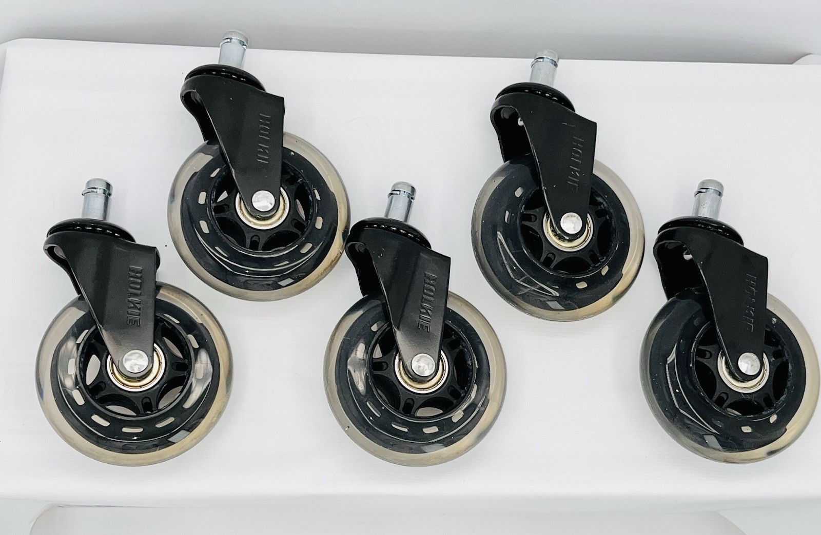 #1319 Roller blade type office chair wheels~5 count They work great, but my chair back broke and Santa got me a new chair with these type wheels already installed 3 inch wheels and posts are 11mm x 22mm Make sure they will fit your chair, because there are different sizes. ~Thank you for showing interest in my products~ Shipping... orders are processed Monday thru Friday and shipped the same day, if purchased by noon. Returns ...I graciously offer 30 day free returns. I keep things honest .... Please extend the same courtesy with your returns. Products are from a smoke free and clean home with a feline resident.