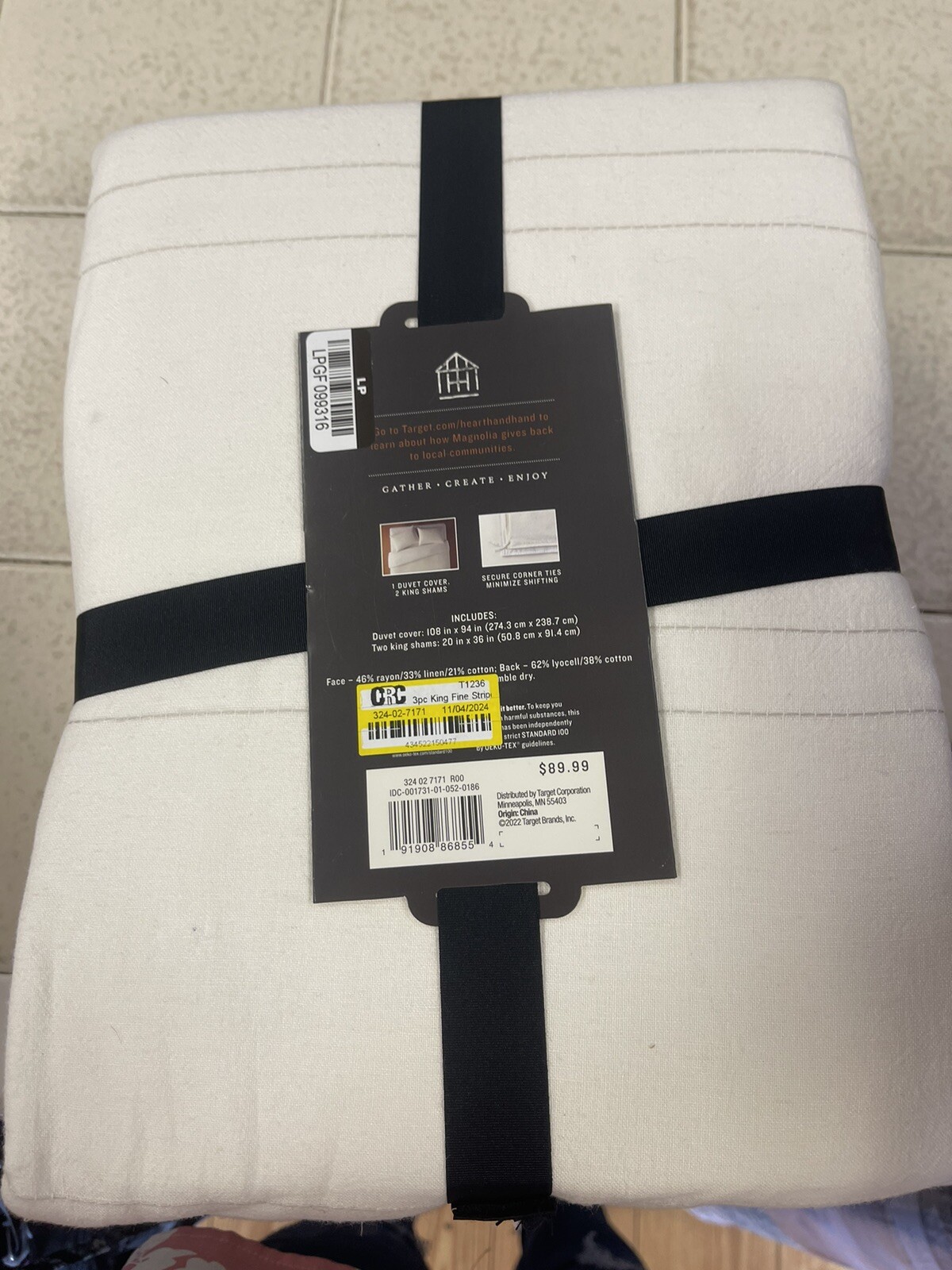 Dress Length:KingStyle:Bedding SetsMPN:84824664Material:46% Rayon, 33% Linen, 21% CottonModel:Hearth & Hand with Magnolia-84824664Size Type:RegularBrand:Hearth & Hand with MagnoliaColor:CreamThread Count:100Item Width:12.000UPC:191908868554Form Factor:Bedding SetsDepartment:AdultsNumber of Items in Set:3gtin13:191908868554Pattern:StripesRoom:BedroomSet Includes:2 King Shams, duvet coverSize:KingItem Length:16.000Type:Bedding Sets
