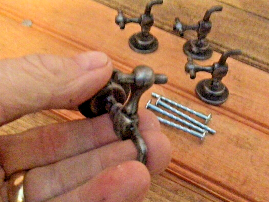 Welcome to Hammering Hanks Garage... where everything makes sense... Enhance your kitchen or bathroom decor with this set of 4 classic water faucet iron pulls. Each pull is meticulously crafted to infuse a rustic charm into your cabinetry, perfectly capturing the essence of a bygone era. The brown finish offers a warm and inviting touch that complements a variety of interior styles. The pulls are designed for durability and ease of use, with a robust iron construction ensuring long-lasting performance. This set comes complete with all necessary screws for easy installation, making it a practical and stylish addition to any home. Embrace the simplicity and elegance of North American Country Home's craftsmanship with this functional and decorative drawer pull set. We offer free same day shipping! Grab yours today!