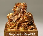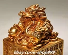 3" China Dynasty Copper Gold Dragon Loong Imperial Seal Stamp Signet