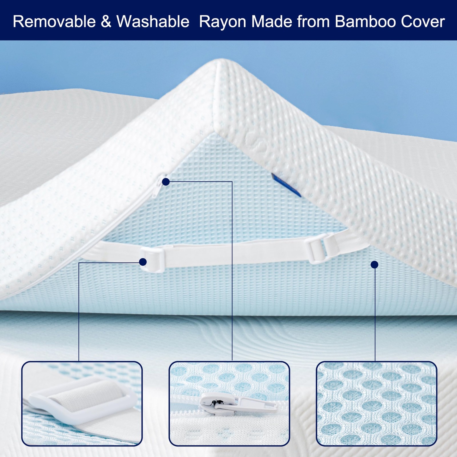 Mattress Topper Protector Rayon Made from Bamboo Bedding Topper Cover Mattress Topper Protector (Only Cover): Adopting from Premium Cooling Rayon Made from Bamboo. Its zip closure ensures your mattress topper with full coverage. Also, it could refresh your old mattress topper to brand new with less expense Various Size Mattress Topper Cover: To meet the difference needs,we provide 6 sizes for different shape mattress topper: Twin (39” X 75”), Twin XL (38” X 80”), Full (54” X 75”), Queen(60” X 80”), King(76” X 80”), CK ( 72” X 84”), you could choose the most suit size for yourself Best partner for sleep: Our product committed to improving sleep quality, offering a comfortable noiseless sleeping experience to all ages Fitted Mattress Cover: Removable topper cover perfectly fits your mattress. The encasement is equipped with mesh fabric backing and adjustable straps, keep the topper stay in place effectively throughout the night Warranty: If you are not satisfied with our products, please contact our customer service department and we will do our best to make it right. We are confident in our products' quality