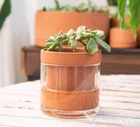 4 Inch Self Watering Planter Pot, Terracotta Clay Pot with Glass Reservoir for Indoor Plants, Herbs, Flowers, Set of 2, 52-A-E-2 Self-watering System: The terracotta pot is unglazed, just fill the glass container with water to ensure plants will absorb only what they need through the terracotta pot walls. Easy to Refill: The outer glass vase allows excess water to be stored at the bottom. Fill in about 1/3 of water at once, and you are free to go! Your plants will thrive for at least 10 days without daily care. Through a clear view you know when it is time to refill the reservoir. Forget about under / over watering, as just the right amount of moisture will be delivered to the plant roots. Dimension: 4.0'' Outer diameter (3.0'' Inner diameter) × 4.1'' Height. Please see the dimension image for details. Clean and Tidy: No drainage holes means no leakage of water or soil, saving you the trouble of cleaning the tabletop every now and then. Minimalist design with terracotta’s classic orange color naturally fits into any décor styles. Makes a super cool gift for your mom and friends too! Hassle-Free Replacement or Refund: Extremely well-designed package to prevent damage. If still any damage or issues, please feel free to reach out for a quick and satisfying hassle-free resolution.