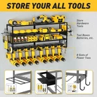 4 Layers Large Wall Mount - Heavy Duty 8 Drill Holders for Garage Storage Rack, Suitable Tool Rack for Workshop, Workbench with Hammer Pliers Racks, and Hooks SPACIOUS 4-TIER DESIGN: Dominate your tool chaos with the , featuring 4 ultra-wide tiers (" per tier), over 2 inches wider than average racks for heavy-duty storage. Securely store 8 cordless drills on the reinforced bottom tier, while the expansive top tiers effortlessly organize bulky power tools, wrenches, and small accessories. No more cramped layouts—engineered with 16-inch stud compatibility to maximize wall space and keep every tool visible and within arm’s reach for garages, workshops, or DIY projects REINFORCED DURABILITY & HEAVY-DUTY CONSTRUCTION: Built to last, the features upgraded welding points and a scratch-resistant, anti-rust coating, ensuring enhanced strength and longevity. Constructed from thickened heavy-duty steel, this rack confidently supports over 180 pounds without bending or breaking. Rigorously tested for strength and stability, it resists deformation and securely stores your heaviest tools, making it the ultimate choice for garages, workshops, or DIY projects. REMOVABLE TOOL RACKS & HOOKS FOR VERSATILITY: This tool organizer comes with removable racks for hammers, pliers, screwdrivers, and paint cans, plus 4 sturdy hooks for hanging floating tools. Customize the layout to fit your specific needs and make the most of your workspace EFFORTLESS 10-MINUTE ASSEMBLY: Get your garage organized in record time! With a tool-free, hassle-free setup, the is ready to use in just 10 minutes—no complicated instructions or extra tools required. Spend less time assembling and more time organizing your tools with ease UNIVERSAL WALL COMPATIBILITY: Designed to adapt to any workspace, our tool rack seamlessly mounts on wood, drywall, cement, and more, making it perfect for garages, workshops, or basements. Whether you're upgrading your own space or gifting it to a DIY enthusiast or dad, this organizer is the ultimate solution for a clutter-free, streamlined workspace