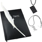 Package includes 1 anime note , 1 feather pen, 1 L necklace, 1 book pendant chain necklace and 1 bookmark The notebook measures: 5.9x8.2 inches, 74 sheets (148 pages), Feather pen: length 11 inches, Notebook pendant: 1.18 x 0.75 inches, L pendant: 1.2 x 1.2 inches, Necklace: chain length19 inches, L Keychain: 1.2 x 3.8 inches Cover Material: PVC Leather Cover-The premium leather hard cover make the anime notebook more durable and touched comfortably, meticulous workmanship, it can be used for a gift to friends It is perfect for cosplay, anime notebook anime theme party, Halloween Costume or daily use Cosplay anime notebook, anime books, cosplay accessories, 100% Brand New, great gift for animie fans as collection Package included: 1 notebook, 5.9*8.2 inches, 74 sheets(108 pages ). 1 feather pen, length 11 inches. 1 L necklace, length19 inches. 1 Book pendant chain necklace, length19 inches. 1 bookmark. It is perfect for cosplay, notebook anime theme party, Halloween Costume or daily use. Great gift for animie fans as collection.