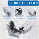 4 Pack Folding Table Leg Brackets, Foldable Self-Locking Hinge Extension Support Brackets Feature: -Easy to install, the package is come with mounting screws, easy and convenience for quick installation. -Self-locking design, with spring lock, ensure safety while using and save storage place when not use. -Wide range of usage, suitable for various furniture legs and some extensive applications. Specifications: Material: Metal Iron Color: Natural Folded Size: 73.3 x 45.8 x 32.4mm / 2.88" x 1.8" x 1.27" (L x W x H) Unfolded size: 67.5 x 46 x 60.6mm / 2.66" x 1.81" x 2.39" (L x W x H) Thickness:2.3 mm / 0.09" Hole Diameter: 5 mm / 0.2" Package Included: 4Pcs x Folding Brackets Sufficient Mounting Screws Notices: 1.The color of the item may have slightly different from the pictures due to different photography light. 2.Due to manual measurement, please allow an error of 1-3mm. Thank you for your understanding. 【What You Will Get】4 x 90 Degree Folding Brackets + Sufficient Mounting Screws. Unfolded size: 67.5 x 46 x 60.6mm/2.66" x 1.81" x 2.39" (L*W*H), Folded size: 73.3 x 45.8 x 32.4mm/2.88" x 1.8" x 1.27". Mounting screws are included in the package for easy installation. 【Premium Material】The Foldable Support Bracket is made of high-quality metal iron. It is sturdy, stable, rust-resistant, and corrosion-resistant, ensuring a long service life. Its versatile design easily various home styles. By using this hinge, your table becomes flexible, allowing you to save storage space effectively. 【Good Loading Capacity】The Folding Table Leg Brackets are constructed with a high-strength steel structure, exhibiting strong toughness and durability. They have a good loading capacity and can support weights of up to approximately 105 kg (230 lbs) per pair. 【Self-Locking Design】The Extension Support Bracket features a self-locking design with a push button and spring mechanism. It allows for easy folding and self-locking functionality. The spring-activated forced lock keeps the bracket stable when it is open. When you need to the table and not in use, simply press the latch to fold it. 【Widely Application】The Folding Self-Locking Hinge is adjustable from 0 to 90 degrees, making it suitable for tables, beds, workbenches, DIY projects, or any furniture legs that require extension. It finds extensive use in spaces with limited room such as kitchens, laundry rooms, retail stores, warehouses, offices, and more.