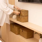 Dimensions: XL: 14.2 x 9.4 x 7.1H, L: 12.2 x 7.1 x 5.9H, M: 10.2 x 5.9 x 4.7H, S: 9.1 x 4.7 x 3.9H. Material: 100% Natural Seagrass with iron wire frame, provides durable quality and soft touch. Save Space: Perfect for storage DVDs, CDs, books, remote control, buttons, snack in living room. Skin-care products, socks, Card issuance in bedroom. Toiletries, towels in bathroom. That will make your home organized. Features: These storage baskets with lids that could protect your things from dust. The pastoral design style will make your home full of nature. Easy Cleaning: Wipe gently with damp cloth and store in a dry area.