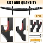 Features: Easy to install: Two hanging hole is designed behind each dagger wall mount. You only need to install the corresponding hooks or nails on the wall, and you can easily fix our weapon rack, which is not easy to drop. Creative gifts: These cane displays can add an artistic atmosphere to the room when hanging at home, and are popular among people. They are suitable as gifts for your family, friends, colleagues or neighbors, especially those who like to collect weapons and magic wands. Specifications: Main material: wood Color: as picture shown Size: approx. 5.9 x 2.75 inches Package includes: 4 x Weapon display hangers 8 x Plastic expandable tube connectors 8 x Screw bolts Notes: Manual measurement, please allow slight errors on size. The color may exist a slight difference due to different screen displays. Small parts included, please keep away from children in case of choking risk. Sword display rack set: you will receive 4 pieces sword holder wall mounts with paint on the surface; We also provide you with screws and yellow plastic expandable tube connectors in the package, which is convenient for you to install the bracket after receiving the package, saving you time in selecting accessories Appropriate Size: our sword mounts for wall are about 5.9 inches in length, 2.75 inches in width, and 1.38 inches in inside width, which is suitable for displaying various weapons, props, and decorations, adding a more personalized artistic atmosphere to your home Functional Display Holders: the katana holder are applied to display your sword and decorate your room, and the bolts are firmly fixed on the wall; After removing the display stands, it will not leave any traces on your wall, and you can also install them with installation tape Applicable Occasions: these sword holders are reliable in quality and elegant in appearance, and are suitable for different decorative styles; They can not only be placed at home as decoration, but also be decorated in offices, shopping malls, cafes, bars, hotels and other occasions, bringing a novel feeling to guests Improve: in order to make your sword stand more stable, we have made improvements, from 1 opening on the back to 2 openings and increased the number of screws to protect your Samurai sword easily