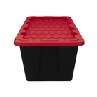 Organize clutter and hide unused items with the Hyper Tough 40 gallon snap-lid plastic storage tote. Made of durable polypropylene, the black storage tote allows you to hide away things you don’t want to be seen while the red snap-lid adds a pop of color to your space. The 2-point snap-lid ensures your items are safely secure during storage or transport. The specially molded lid allow you to stack multiple totes on top to prevent toppling and maximize storage space. Protect your valuable by utilizing the 6 tie-down holes made for zip-ties and padlocks. The long lasting Hyper Tough tote works great in basements, closets, pantries, sheds, barns, and attics. This tote is great for organizing household products, gardening supplies, pet treats and supplies, shoes, clothing, seasonal gear like boots, sporting equipment such as golf balls, tennis balls, or drill cones, and many other items. Sturdy black plastic construction resists rust, dents, stains and peeling to ensure lasting use Stackable lid design creates stability and reduce toppling when multiple storage bins are stacked Snap-Fit Lid lip keeps your content from spilling or falling out Lockable Lid comes with X holes ideal for zip-ties or padlocks to keep your items safe and secure Exterior Dimensions - 38.2 IN WX22 IN DX 16.4 IN H (97 cm x 55.9 cm x 41.6 cm) Easy to clean surface Indoor or Outdoor use Made from recycled materials Reusable Set of 1 – Includes 1 black base and 1 red lid Weight – 9.3 lbs Available in multiple sizes: 5 Gallon, 12 Gallon, 17 Gallon, 27 Gallon, 40 Gallons and 50 Gallons