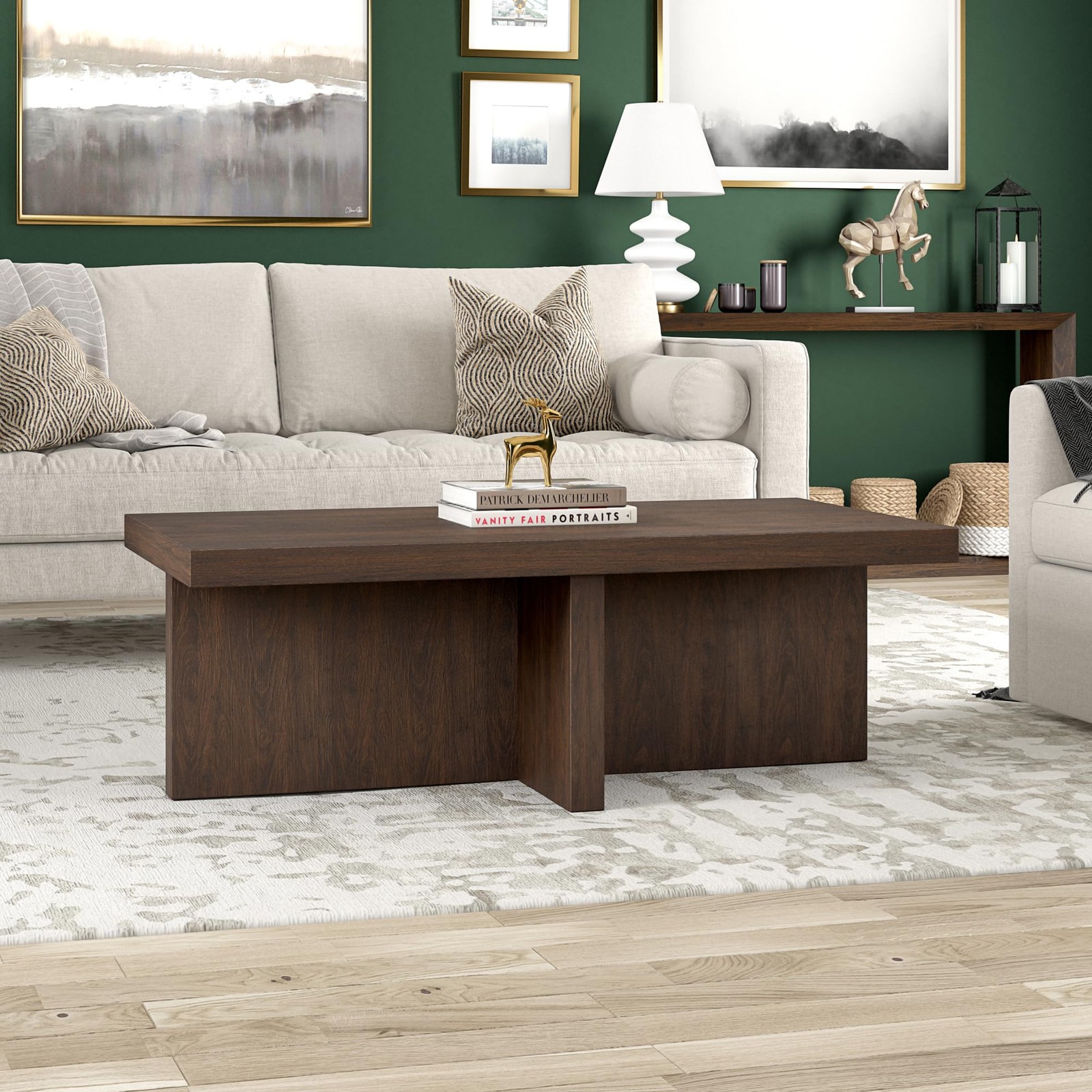 A contemporary Scandinavian design for your living room, den, and more. Finished in wood-look alder brown. Table is made of high-quality and durable MDF materials. Tabletop features a weight capacity of 50 lbs. Features easy assembly.