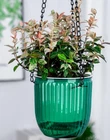 Clear As Glass: High quality transparent PET materials make our plastic hanging pot for plants as clear as glass. Visible water level from any angle. Easy for you to see how much water in the hanging flower pot. Hanging Self Watering Planters: The hanging baskets for indoor plants come with 16.5 inch long enough chains and cotton string wicks ropes. Transfer and soak up water from outer pot to inner pot to keep consistent moisture. Outer pot base like a water reservoir allows you to add extra water to offer you more time in between watering for a couple of weeks at least. Water Ecosystem: Our self watering planter pot for indoor plants is 2 in one by lifting the inner pot. The inner planting pot has enough drainage holes to drain water to the bottom of outer pot where the excessive water is accumulated like a water reservoir. Perfect to prevent the problem of drowning plants in water too much, in turn the water reservoir is soaked up by the wick rope to feed plants. Multi Scenario: The indoor plant hanger can be set on table without hanging chains, also be hanging anywhere you want, Great for hanging plants indoor outdoor, suitable for all most plants. Premium Materials: Sturdy coating, thick plating hanging chains can help avoid rusting for outdoor use. Light weight and decently sturdy can coexist due to the thickened high dense PET raw material. Also can be exposed to the sun, harsh winter and they will not fade or crack. Product Description See Through Easily Our hanging plant baskets unique feature high-quality transparent PET, clear as glass, easy to see through and tell how much water in. Good compromise between opacity and hiding the water, keeping an eye and easy monitoring on water level. The hanging outdoor planters, well made and truly give the appearance of real glass but are actually plastic. High Dense Plastic & Durable Coating Chains for Outdoor Hanging wire of the outdoor hanging pots coated with durable plating thoroughly to prevent rusting. 3 hooks make sure of stability and stay secure for wind-resistance. Super thick, high dense PET material realize lightweight and sturdy coexisting. The hanging plant pots exposed to the sun, harsh winter will not fade, crack or peel. Hanging Anywhere or Set on Table Hanging basket planter with removable hanging wire which is easy to be disassembling. Specially-made bottom also make it suitable to be set on table without wires. Attractive color, perfect jewel tone mix of blue and green. Hook large enough to hang on a curtain rod, perfect in house. Innovative Gifts for Plant Enthusiasts, Garden Lovers! High grade transparency plastic gives clear appearance of glass. Fresh, elegant match with lovely plants. Perfect home decor partner for porch, windowsill, kitchen, balcony, garden, office, etc. Self Watering Water is transferred from outer pot to inner pot to help offer consistent moisture. Through a cotton string wick to soak up water, the outer pot base like water reservoir allows you to add extra water because it’ll be soaked it up slowing. You have more time in between watering! Inner Pot with Drainage Net- Plants Grow Healthily Simple Hooks Design Perfect Coexisting of Hanging & Glass Look Well made of plastic actually, sturdy and truly give the appearance of real glass. However, it doesn’t take away too much from the look. It actually ends up being for the better because they're not too heavy for hanging. A great idea and cuts down on the total weight once you add a plant and water to it. Beautiful color looks like glass, perfectly sized for your needs. Inner planting pot hold surprising amount of soil, drainage net drain excessive water to outer pot base which mainly work like a water reservoir. Perfect to prevent problem of drowning plants. Easy to assemble the hooks. Just pass an end of it transversely through a hole on the hanging indoor planters