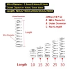[Item] -- 304 Stainless Steel Compression Springs Assortment Kit [Description] -- 15 different sizes, totally 450 springs. [Size] -- Wire diameter * Outer diameter * Free length 0.3mm*4mm*30mm (0.012"x0.16"x1.18") -- 40pcs 0.3mm*4mm*25mm (0.012"x0.16"x0.99") -- 40pcs 0.3mm*4mm*20mm (0.012"x0.16"x0.79") -- 40pcs 0.3mm*4mm*15mm (0.012"x0.16"x0.59") -- 40pcs 0.3mm*4mm*10mm (0.012"x0.16"x0.39") -- 40pcs 0.4mm*5mm*30mm (0.016"x0.2"x1.18") -- 30pcs 0.4mm*5mm*25mm (0.016"x0.2"x0.99") -- 30pcs 0.4mm*5mm*20mm (0.016"x0.2"x0.79") -- 30pcs 0.4mm*5mm*15mm (0.016"x0.2"x0.59") -- 30pcs 0.4mm*5mm*10mm (0.016"x0.2"x0.39") -- 30pcs 0.5mm*6mm*30mm (0.02"x0.24"x1.18") -- 20pcs 0.5mm*6mm*25mm (0.02"x0.24"x0.99") -- 20pcs 0.5mm*6mm*20mm (0.02"x0.24"x0.79") -- 20pcs 0.5mm*6mm*15mm (0.02"x0.24"x0.59") -- 20pcs 0.5mm*6mm*10mm (0.02"x0.24"x0.39") -- 20pcs [Customer Service]- If you need any advice or product support, please contact our excellent customer service team who will happily respond to your question within 24 hours. [Anti-rust Material] --Our compression springs are made of 304 Stainless Steel, which is reliable and reusable. It is very resistant to oxidation, corrosion and rust for a long service time. [Package Include] -- 15 different sizes spring assorted in individual compartment, total 450 pieces in box. [Easy to Carry] -- Comes in a transparent box, which is light and small, easy to carry and store. 15 compartment storage with size label marked, you can pick up your target size easily and quickly. [Fit Most Use] -- 15 sizes would be completely enough for all your DIY project and Home repair, such as electrical equipment, 3D printer, piano, pens, toys, scissors, pliers, home tool, etc. [Size: A×B×C] -- A is Wire diameter, B is Outer diameter, C is Free length: [0.012"x0.16"x1.18"]; [0.012"x0.16"x0.99"]; [0.012"x0.16"x0.79"]; [0.012"x0.16"x0.59"]; [0.012"x0.16"x0.39"]; [0.016"x0.2"x1.18"]; [0.016"x0.2"x0.99"]; [0.016"x0.2"x0.79"]; [0.016"x0.2"x0.59"]; [0.016"x0.2"x0.39"]; [0.02"x0.24"x1.18"]; [0.02"x0.24"x0.99"]; [0.02"x0.24"x0.79"]; [0.02"x0.24"x0.59"]; [0.02"x0.24"x0.39"];