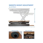 The DADR-46 Standing Desk Converter Bundle is the perfect way to get your ergonomic workstation started. It comes with a Rocelco DADR-46 Sit to Stand Desk Riser & a Rocelco MAFM Medium Anti Fatigue Mat. The DADR-46 Height Adjustable Sit to Standing Desk Riser & Converter offers the versatility you need to get through your work day. Now you can sit part of the day or stand to take advantage of all the Health Benefits that come with standing & moving around. With the DADR-46, you & your associates will become healthier & more productive. It fits over your current desk with no need to buy additional furniture. With its Spacious 45.75" W x 23.75" D work surface, you can hold up to 3 large monitors, a laptop, & more. It also includes an Retractable keyboard tray that measures 25.75" W x 11.25" D that is an ergonomic 4.5" below the desktop. EVR Enhanced Vertical Range rises up to 20" & down to 5", to optimize the ergonomic work position for people of all heights. Straight up & down motion minimizes required depth (23"). Gas piston assist allows you to easily raise & lower up to 45lbs. Grommet Hole allows you to route cables or add an optional single, double or triple monitor arm such as the Rocelco DM1, DM2 or DM3. It works with your existing desk or create a complete Standing Desk with the optional Deluxe Floor Stand (DADR-FS). Fully assembled & ready to go! The MAFM Anti-Fatigue Mat is designed to work in tandem with Standing Desk risers, like the Rocelco ADR, DADR, EADR, CADR & MSD series. It will help support your back, hips, knees & feet so you can get all the benefits of standing while you work. This Versatile desk mat effectively “reduces" your weight by 30% to make standing easier on your feet & joints. The advanced multi-layer construction offers a Comfortable “leather like" top surface, a memory foam inner layer & a non-slip bottom. Features: Finish: Teak Wood Grain Material: Stainless Steel, Aluminum, MDF Standing Desk Bundle: Includes the Standing Desk Converter (R DADRT-46) and Medium Anti Fatigue Mat (R MAFM) Extra Large Work Surface: 45.75" wide by 23.25" deep desktop Holds Upto 3 medium sized monitors or two large monitors and the 25.75" wide by 11.25" deep Retractable keyboard tray will hold a laptop if needed. Works with optional Deluxe Floor Stand (DADR-FS) to create a complete standalone Standing Desk. Retractable Ergonomic Keyboard Tray: Keyboard tray extends & retracts while keeping a 4.5" spacing between keyboard tray and desktop which helps keep arms and wrists in an ergonomic position to prevent neck and back strain while sitting or standing. Quick, Easy and Stable Height Adjustment with EVR Enhanced Vertical Range Design: Sturdy metal frame with easy-grip side handle and gas piston assist. Can raise and lower up to 45 pounds with continuous height adjustment from 5" up to 20" above desktop to optimize the ergonomic work position for people of most heights. Straight up and down motion minimizes required depth (23.25") Includes The Versatile MAFM desk mat effectively “reduces" your weight by 30% to make standing easier on your feet and joints. Grommet Hole: For hassle free Cable Management, or to install a monitor mount for 1, 2 or 3 monitors, such as the Rocelco DM1, DM2 or DM3. No Assembly Required: Simply remove from box and place directly on existing desktop. Specifications: Product Dimensions: (Desktop) 5-20"H x 46"W x 23.62"D Product Weight: 57 lbs Weight Capacity: 45 lbs Assembly Required: No