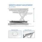 The DADR-46 Standing Desk Converter Bundle is the perfect way to get your ergonomic workstation started. It comes with a Rocelco DADR-46 Sit to Stand Desk Riser & a Rocelco MAFM Medium Anti Fatigue Mat. The DADR-46 Height Adjustable Sit to Standing Desk Riser & Converter offers the versatility you need to get through your work day. Now you can sit part of the day or stand to take advantage of all the Health Benefits that come with standing & moving around. With the DADR-46, you & your associates will become healthier & more productive. It fits over your current desk with no need to buy additional furniture. With its Spacious 45.75" W x 23.75" D work surface, you can hold up to 3 large monitors, a laptop, & more. It also includes an Retractable keyboard tray that measures 25.75" W x 11.25" D that is an ergonomic 4.5" below the desktop. EVR Enhanced Vertical Range rises up to 20" & down to 5", to optimize the ergonomic work position for people of all heights. Straight up & down motion minimizes required depth (23"). Gas piston assist allows you to easily raise & lower up to 45lbs. Grommet Hole allows you to route cables or add an optional single, double or triple monitor arm such as the Rocelco DM1, DM2 or DM3. It works with your existing desk or create a complete Standing Desk with the optional Deluxe Floor Stand (DADR-FS). Fully assembled & ready to go! The MAFM Anti-Fatigue Mat is designed to work in tandem with Standing Desk risers, like the Rocelco ADR, DADR, EADR, CADR & MSD series. It will help support your back, hips, knees & feet so you can get all the benefits of standing while you work. This Versatile desk mat effectively “reduces" your weight by 30% to make standing easier on your feet & joints. The advanced multi-layer construction offers a Comfortable “leather like" top surface, a memory foam inner layer & a non-slip bottom. Features: Finish: Black Material: Stainless Steel, Aluminum, MDF Standing Desk Bundle: Includes the Standing Desk Converter (R DADRW-46) and Medium Anti Fatigue Mat (R MAFM) Extra Large Work Surface: 45.75" wide by 23.25" deep desktop Holds Upto 3 medium sized monitors or two large monitors and the 25.75" wide by 11.25" deep Retractable keyboard tray will hold a laptop if needed. Works with optional Deluxe Floor Stand (DADR-FS) to create a complete standalone Standing Desk. Retractable Ergonomic Keyboard Tray: Keyboard tray extends & retracts while keeping a 4.5" spacing between keyboard tray and desktop which helps keep arms and wrists in an ergonomic position to prevent neck and back strain while sitting or standing. Quick, Easy and Stable Height Adjustment with EVR Enhanced Vertical Range Design: Sturdy metal frame with easy-grip side handle and gas piston assist. Can raise and lower up to 45 pounds with continuous height adjustment from 5" up to 20" above desktop to optimize the ergonomic work position for people of most heights. Straight up and down motion minimizes required depth (23.25") Includes The Versatile MAFM desk mat effectively “reduces" your weight by 30% to make standing easier on your feet and joints. Grommet Hole: For hassle free Cable Management, or to install a monitor mount for 1, 2 or 3 monitors, such as the Rocelco DM1, DM2 or DM3. No Assembly Required: Comes ready to use out of the box and only required a desk depth of 23". Specifications: Product Dimensions: (Desktop) 5-20"H x 46"W x 23.62"D Product Weight: 57 lbs Weight Capacity: 45 lbs Assembly Required: No