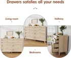 Product Description About this item 【Natural Rattan】 Featuring natural handmade rattan ,the bedroom dresser is elegant and stylish to match your home, adding a unique Bohemian style. Natural rattan is healthy and environmentally friendly, and it has good light resistance and wear resistance, making the rattan dresser more comfortable and practical. 【Versatile Sideboard Cabinet】The buffet cabinet with storage offers a variety of storage options to keep your space free of clutter. The top of the sideboard cabinet is perfect for items such as coffee pots, microwaves, potted plants, photo albums, etc. In addition, it can be used for wherever to save you from clutter and keep your space neat and tidy, such as the bedroom, closet, entryway, dorm, living room, or kitchen. 【Dresser with 8 Drawers Design】This chest of drawers blends farmhouse beauty with the practicality of storage space. Size 47.24 “W * 15.75 ‘D * 34.65 ’H. 8 Smooth Sliding Drawers Matching with 3 different sizes, you are free to choose and place clothes, linens, cozy blankets or pillows, adding storage space to your home. 【Sturdy Durable】The bedroom Sideboard cabinet is made of durable engineered wood for long-term use, scratch resistant. No strong odor. It's made of premium P2 manufactured wood with a distressed neutral finish of your choice. In addition, 5 thickened table legs provide reliable stability for the dining room cabinet. 【Easy Assembly 】The Farmhouse Sideboard is accompanied by comprehensive hardware and instructions.According to the detailed instructions, you can easily complete the assembly, just like a building game. If you encounter any problems, please feel free to contact us, we will solve your problems. Natural Rattan 8 Drawers Dresser for Bedroom Rattan Wide Dresser with 8 Drawers, Long Dresser for Living Room Ample Storage Space Dresser for Bedroom with Large Capacity Storage Cabinet Natural Wooden Bedroom Dresser Details Highlight Quality Farmhouse Sideboard Wooden Clothes Storage Cabinet Chest of Drawers Sturdy Durable Golden Metal Handle Anti-tipping device Stable and Sturdy Wood Legs for Bedroom,Living Room,Hallway,Closet,Entryway