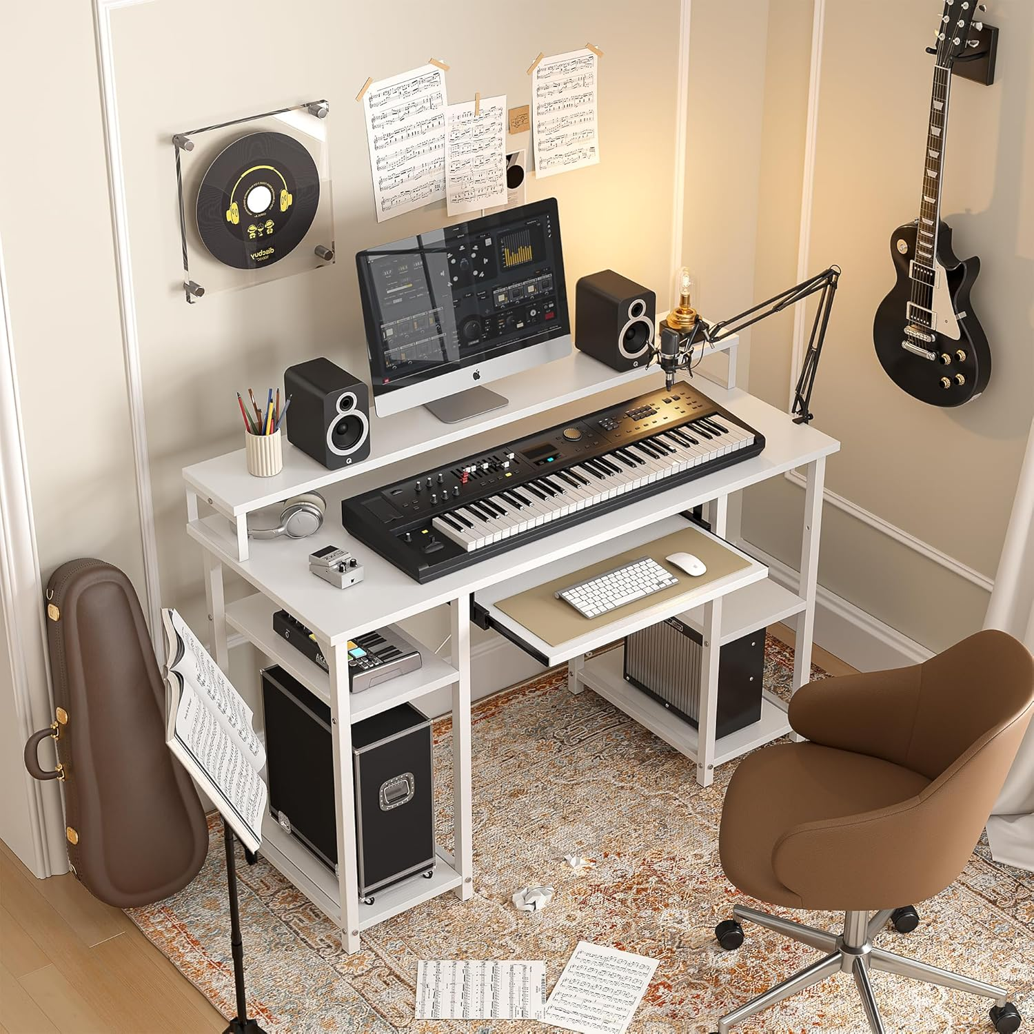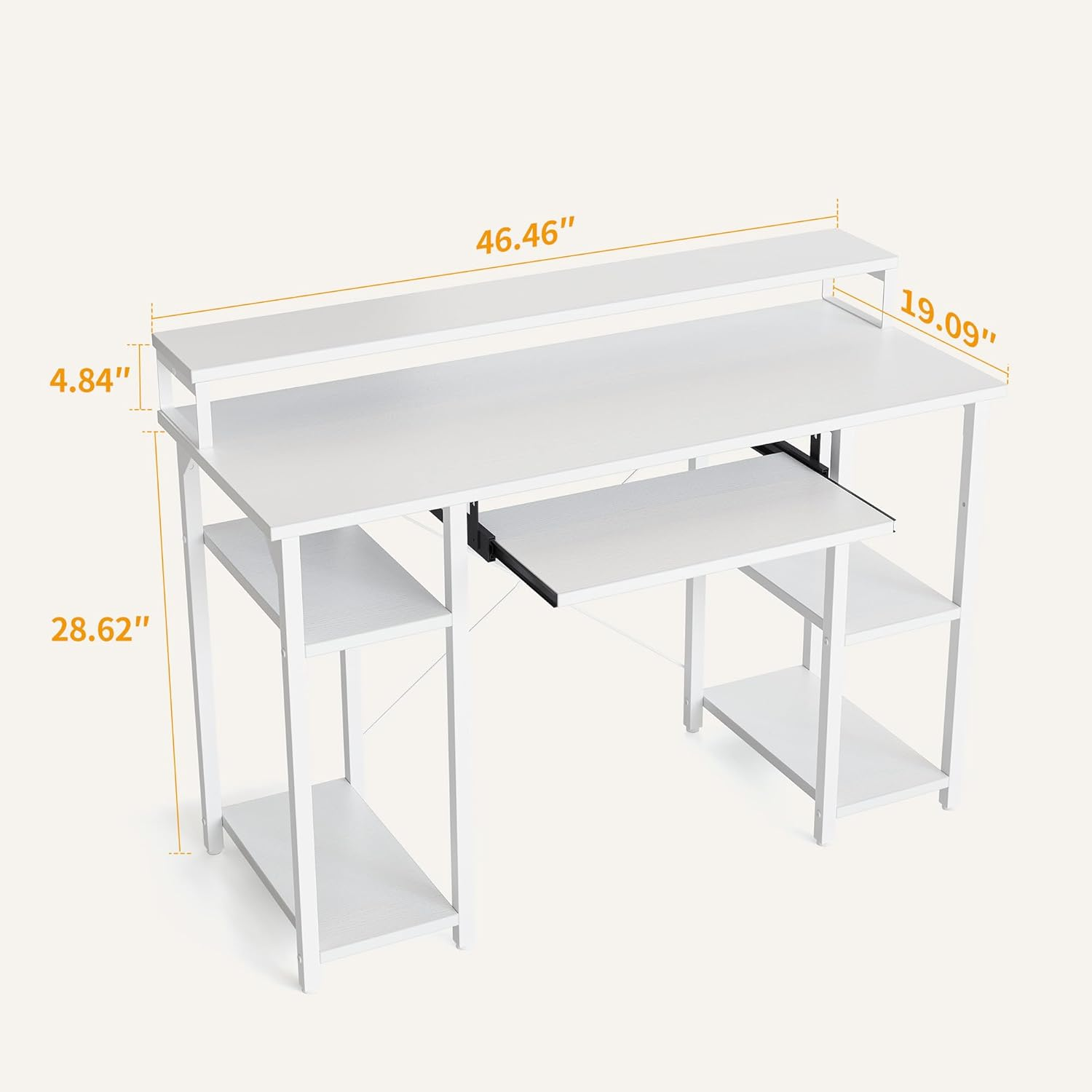 Computer Desk with Monitor Stand: Upper shelf is nice for monitor placement, keeps the monitor at a healthy height with plenty of room to spare on the desk. Ample Storage Space:Under desk open shelves increse the storage space which is perfect for your extra items for daily use; keyboard tray is suitable for keyboard and mouse of most size, free up desk sapce. Stability Construction: CubiCubi computer desk is constructed of premium metal frame & high-quality MDF Board, X-shaped crossbar provide extra stability which is durable enough to strongly support the stuff on it. Simple Design & Multifunction : The computer desk works perfectly as a computer desk, office desk, work desk and study desk, ideal for bedroom, home office or in dormitory. Easy Assembly & Worry-free Service: With detailed instruction and all tools needed for assembly, it will not take much time for installation; We provide professional customer support. If you have any problems related to our desk, please feel free to contact CubiCubi customer service at your earliest convenience Product Description