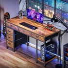 Menu Other Items Feedbacks About Us Contact Us Add To Favorites Computer Desk with 6 Drawers, 47 Inch Office Desk with Shelves, Reversible Gaming Desk, Corner Desk with Storage, Work Desk for Home Office, Study, Living Room, Rustic Brown 【6 Drawers Computer Desk】With 6 spacious fabric drawers, this home office desk is perfect for keeping your home office or gaming items organized. Drawer Size: 14.3 x 17.7 x 3.7 Inch; 8.5 x 17.7 x 6.8 Inch. Get a designated and divided spot for everything from books and files to gadgets. Whether you're working from home or gearing up for a gaming session, enjoy the benefits of a tidy, efficient space 【Reversible Design & Adjustable Shelf】You can choose to install the fabric drawers on either the left or right side, making this writing desk adaptable to your space. With 2-level pre-drilled holes for the middle shelf, you can adjust its height to hold tall or short items or remove it entirely to accommodate your host. This flexibility allows you to create a work space that’s perfect for your needs 【Multiple Uses】This desk with shelves isn't just for work or play, it's multi-functional and can serve as a computer desk with storage, gamer desk, or even a makeup vanity. Need more storage in your home office? Done. Want a sleek, organized gaming room? No problem. Just add a mirror, and it transforms into a stylish vanity desk 【Solid Construction】Crafted with solid particleboard, sturdy metal frame, and durable fabric drawers, this studio desk is built to last. The robust construction ensures stability, even during intense gaming sessions or heavy workload days. The sturdy strut behind the desk provides additional support, so you can trust it to hold up over time 【Easy Assembly】Don't stress about setting up your new bedroom desk. With the provided tools, clearly numbered components, and straightforward instructions, you'll have your gaming computer desk assembled within 45 minutes. Adjustable feet under the desk keep balance and protect the floor from scratches Product Description Ample Storage with Divided Space More Details of the Computer Desk 6 Fabric Drawers Drawer Size: 14.3 x 17.7 x 3.7 Inch and 8.5 x 17.7 x 6.8 Inch. You can store your office items with different heights and sizes easily. Adjustable Feet Adjustable feet under the computer desk make up uneven floors and protect your floor from scratches. More Computer Desks, Meet Various Needs Add to Cart Add to Cart Add to Cart Add to Cart Add to Cart Add to Cart Customer Reviews 4.4 out of 5 stars 3,304 4.5 out of 5 stars 760 4.5 out of 5 stars 909 4.4 out of 5 stars 522 4.6 out of 5 stars 1,193 4.5 out of 5 stars 662 4.5 out of 5 stars 1,303 Price $99.99 $ 99 . 99 $65.99 $ 65 . 99 — $129.99 $ 129 . 99 $109.99 $ 109 . 99 $109.99 $ 109 . 99 $139.99 $ 139 . 99 Charging Station ✔ ✘ ✔ ✔ ✔ ✔ ✔ Led Lights ✔ ✘ ✘ ✔ ✔ ✔ ✔ Monitor Stand ✔ ✘ ✘ ✔ ✔ ✔ ✔ Product Size 18.9"D x 53.6"W x 29.5"H 47.2"D x 19.3"W x 29.5"H 55.1"D x 19"W x 29.5"H 18.9"D x 55.1"W x 29.5"H 19.7"D x 49.6"W x 30"H 19.7"D x 47.3"W x 30.7"H 19.7"D x 55.1"W x 29.5"H Colour Rustic Brown Rustic Brown Rustic Brown Rustic Brown Rustic Brown Rustic Brown Rustic Brown Drawer ✘ ✘ ✔ ✔ ✔ ✔ ✔ Item Specification Age Range Description All Style Modern Shape Rectangular Desk design Computer Desk Top Material Type Engineered Wood Desk Design Computer Desk Finish Types Powder Coated Room Type Office, Living Room, Study Room Product Dimensions 18.2"D x 47.3"W x 30.4"H Required Assembly Yes Base Metal Drawer Type Storage Number of Drawers 6 Additional Features Reversible Storage Shelves Finish Type Powder Coated Top Material Type Engineered Wood Number of Drawers 6 Special Feature Reversible Storage Shelves Mounting Type Freestanding Color Rustic Brown Item Dimensions D x W x H 18.2"D x 47.3"W x 30.4"H Base Material Metal Shape Rectangular Style Name Modern Size 47 inch Dimensions Shipping Returns Additional Info Product Dimensions: 47.3 "h x 18.2 "h x 30.4 "h. Fast shipping is very important for us. Our standard shipping service is FREE. Your order will be shipped within 1-3 business days upon full payment received. Most items are delivered within 3-5 business days, however, please allow 3-10 business days. We are shipping only to USA. We only ship to the confirmed Paypal address. We reserve the right to cancel any order for any reason at any time. We are not responsible for undeliverable addresses. We offer a 30 day return policy from checkout winning date. Your satisfaction is guaranteed! If for any reason you are unhappy with your item, just return it within 30 days for a full refund, minus shipping cost. Please contact us prior to initiating a return so that we can issue you a refund authorization. Items defective upon receipt must be packaged in their retail packaging as if new and returned with a detailed description of the problem. Return shipping fees are not refundable. We reserve the right to decline any returns if the above guidelines are not followed. All of our items, unless otherwise stated, will only run on 120 volts. Please check to make sure your country complies with these specifications. If you have a problem or question regarding your transaction please contact us before leaving any type of feedback. We will work with you to resolve any problem you may have.