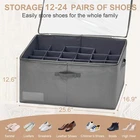 【Sturdy & Durable Construction】: Measuring 25"L x 16.7"W x 12.5"H (64cm x 42.5cm x 32cm). The dividers and body are made of PP board, offering superior support and stability compared to cardboard. Whether filled to capacity or only partially full, it maintains its shape firmly. The exterior is covered in Oxford fabric, making it extra durable and long-lasting 【Sturdy & Durable Construction】: Measuring 25"L x 16.7"W x 12.5"H (64cm x 42.5cm x 32cm). The dividers and body are made of PP board, offering superior support and stability compared to cardboard. Whether filled to capacity or only partially full, it maintains its shape firmly. The exterior is covered in Oxford fabric, making it extra durable and long-lasting 【Large Capacity & Space Saver】: pack of shoe storage box for closet can hold up to 24 pairs of shoes.This shoe storage box is the perfect choice for daily family shoe storage or seasonal organization. Use it in your entryway, closet, storage room, garage, bedroom, or wardrobe—anywhere you need extra organization! When not in use, it easily folds for compact storage 【Adjustable Dividers】: Say goodbye to fixed compartments! With our adjustable dividers of shoe storage bins, you can create the perfect space for shoes of various sizes, including sneakers, heels, boots, sandals, flats, or slippers. No complicated assembly required—simply adjust the dividers to fit each pair of shoes perfectly, ensuring they stay in place 【Clear PVC Cover with Dual Zippers】: Unlike traditional shoe racks, this shoe storage organizer features a transparent PVC lid, allowing you to easily see all your shoes at a glance while keeping them protected from dust and moisture. Worried about pets getting to your shoes? The dual-zipper closure ensures your shoes stay safe and secure. 【Multi-Purpose Storage Solution】: This foldable shoe organizer isn’t just for shoes! It’s also ideal for storing water bottles, wine glasses, bottles of champagne, and more. The adjustable sections can help you organize a variety of items such as clothes, handbags, books, blankets, towels, toys, and toiletries.