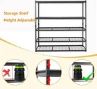 Description: 1. Material: Black Finished Durable Steel Construction, Say goodbye to rust and oxidation—this utility shelf features a premium powder coating that resists scratches and ensures long-lasting performance. Designed for both functionality and style, this shelving unit is perfect for any season, providing reliable storage for tools, supplies. 2. Design: You can adjust the height of the storage shelves according to the size of the item.The spacing of each layer of this wire shelf can be adjusted.shelves adjustable leveling feet allow the wire shelving unit to be placed on uneven ground--a simple twist is all it takes to stabilize.wire shelving unit wire shelf storage shelves . 3. Function: This storage shelves provide an enormous amount of space and strong shelves.The wire shelving unit doesn't occupy too much space,but it can create more additional space.Maximum weight capacity per shelf is 400lbs 4. Tip: The wire shelving unit is simple to assemble, You only need to spend 15min to install it’s storage shelves wire shelf wire shelving unit. 5. Occasion: These robust garage shelving racks offer ample space to neatly store tools, equipment, and supplies, promoting a clutter-free environment. These shelves are perfect for garages, workshops, kitchens, and more. With their sturdy construction and generous dimensions, these shelving units helping you stay organized and making access to your items easier than ever. Package Include: 1x Storage Shelves
