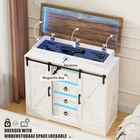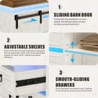 Rustic Farmhouse Design with Ample Storage: This 47" farmhouse-style chest of dresser seamlessly blends rustic aesthetics with functional storage. Featuring 4 spacious drawers (14.17''W x 12.2''D x 3.34''H each) and sliding barn doors, this dresser is perfect for organizing clothing, linens, and blankets, adding a stylish touch to any home Sliding Barn Door Design: Maximize your space with the smooth-sliding barn doors that reveal adjustable shelving. Effortlessly hide or showcase your items with three customizable shelf heights. The metal track ensures quiet, easy sliding, making this an ideal storage solution for all ages and abilities Hidden Storage for Valuables: Safeguard your personal items with the concealed compartment, accessible with a magnetic key. Perfect for securing jewelry, important documents, or even self-defense items, this hidden space brings peace of mind and extra security to your home Adjustable 3-Color Lighting: Switch between 3 colors (White/Yellow/Blue) with our LED lights to create the perfect ambiance for any occasion or makeup look. Whether you prefer white light, yellow light, or blue light, our farmhouse dresser allows you to customize your lighting experience with ease Versatile for Any Room: Whether it's your bedroom, nursery, living room, or entryway, this multi-purpose farmhouse 4-drawer dresser complements any space. Keep clutter at bay while enhancing the farmhouse look with the timeless charm of sliding barn doors and durable construction Hassle-Free Assembly & Purchase Confidence: Detailed instructions, labeled parts, and a spare hardware kit ensure a smooth assembly process. Plus, we include a full pack of spare parts for added convenience. Enjoy the simplicity of setup and bring rustic elegance to your home without stress Farmhouse Dresser Comes With Large Storage Space armhouse 4 Drawers Dresser with Adjustable 3-Color Lighting Additional Details You Might Want to Know About the Chest of Dresser Suitable for Various Scenarios