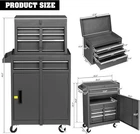Product Description About this item Top Removable Tool Box - This Rolling Tool Chest has 1 rolling tool cabinet with 1 drawer on the bottom and 1 top box with 3 drawers on top. The whole tool box can be disassembled into two parts, and the top box can be put into the big bottom box, which saves space and is even convenient to carry 4 Drawer Storage - This tool cabinet is designed with a total of 4 drawers and 1 base cabinet for storing tools, small equipment or other items. The base cabinet has side hooks for hanging tools such as wrenches. There are holes on the side where tools can be placed for your convenience Easy to move - This tool storage chest & cabinet combo has 4 wheels, 2 of which are lockable and can be locked to prevent movement when it is not needed. The separate tool box on the top also has a handle design for easy movement Lock & Security - The top separate tool box of this product offers a locking bar to prevent the drawer from sliding out during movement, and the bottom rolling tool cabinet is also designed with a lock for added security Durable & Versatile - The tool chest with wheels is made of high quality steel for added durability and is powder coated for a smooth finish that is easy to maintain and clean. It can be used in various occasions such as garages, warehouses, workshops, repair shops and more Note: Please pay attention to product size when purchasing