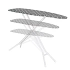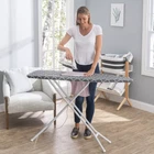 Description The 4-leg ironing board is an essential tool for making laundry day a breeze by keeping all your garments freshly pressed and ironed. With a 53" x 14" mesh steel top, this ironing table provides a sturdy and ample surface for clothing of all sizes. The smooth 100% cotton cover and foam pad offer a comfortable and convenient ironing area to ensure all dress shirts, slacks, bed sheets, tablecloths, and more are crisp and wrinkle-free. This foldable ironing board easily adjusts to any height up to 36 inches tall and folds flat for easy storage, saving space in your apartment, dorm room, laundry room, living room, or even closet. The sturdy legs provide stability, and the patented riveted leg lock design allows for efficient transport and storage. Proudly made in the USA, this ironing board is built to last for all your garment care needs. Highlights Made in the USA: Enjoy infinite height adjustment up to 36 inches for a customized ironing experience that suits users of all statures, ensuring ultimate comfort while pressing your garments to perfection. Advanced Steam Flow: Experience the magic of an innovative mesh top that optimizes steam flow and moisture release, smoothing out wrinkles effortlessly and enhancing the quality of your ironing results like never before. Crafted for Excellence: Impeccable ironing results are guaranteed with premium construction featuring an all-steel frame, coupled with a ¼ inch polyester fiber pad and a 100% cotton stain-resistant cover, ensuring durability and top-notch performance. Spacious Platform: With dimensions of 53.75" x 14.25", this ironing board offers a large surface to handle even the largest garments with ease, transforming your ironing tasks into a breeze. Specifications Dimensions (Overall): 53 inches (L) x 36 inches (H) x 13 inches (W) Weight: 8.25 pounds Material: Steel (Frame) Used For: Ironing Features: Adjustable, Foldaway, Collapsible Materials: Cotton, Polyurethane Foam, Steel.