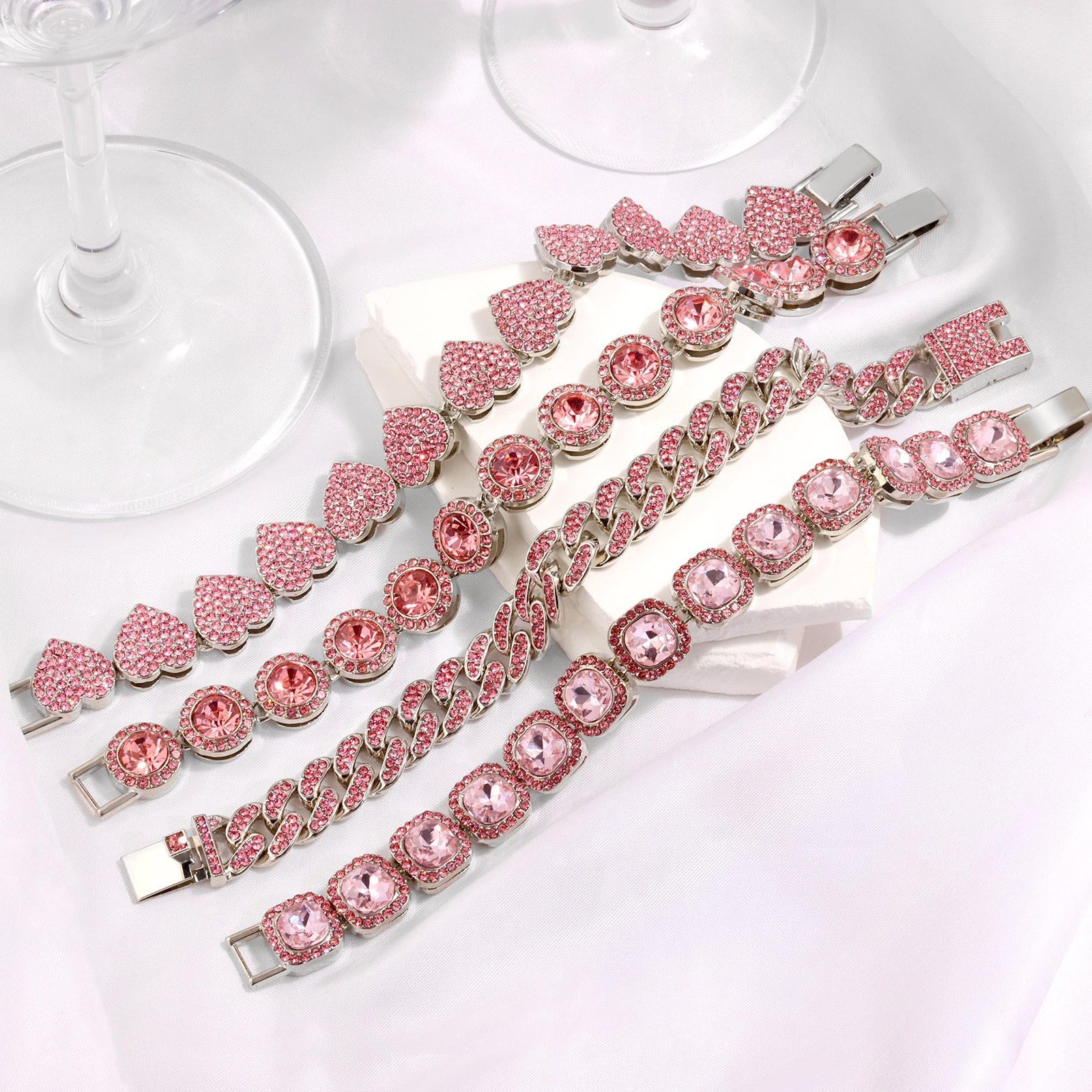 4PCS Gold Bracelets for Women Silver Clustered Tennis Bracelet for Women Heart Round Diamond Cuban Bracelet Layered Link Bracelet Set Fashion Jewelry for Women Gift Set (Pink, 7inch) Product Features: 4PCS: This women bracelet set includes four different styles of bracelets: a heart bracelet, a square tennis chain, a round tennis chain, and a Cuban chain bracelet. Each bracelet measures 8 inches long. Wear crystal bracelet alone or layer it with other chains for a layered look. DESIGN PROCESS: Each women tennis bracelets has more than 500 sparkling rhinestones, hand-inlaid cuban chain bracelets, total number of crystal exceeds 2000, the gold color chain bracelets have enough sparkling rhinestones to catch the eye. BRACELET MATERIAL: This cuban chain set is made from high quality metal that is lead and nickel -no, hypoallergenic, high plated, well protected, and not easy to fade. Skin won't be irritated. OCCASIONS OF USE: In both casual and formal outfits, Cuban chain bracelets look elegant and stylish. In addition to providing the perfect embellishment for different styles of clothing, cuban chain bracelets are distinguished by elegance and beauty. PERFECT : This bracelet for women is the perfect for everyday life, professional events, dinner parties, and weddings. You can show your love with bracelets as a romantic . Among the occasions are Valentine's Day, wedding anniversaries, and birthdays. Miami hip hop jewelry for women can also be given as to friends, wives, mothers, sisters, and friends.