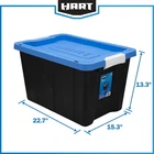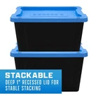 You may also like Heavy Duty Lockable Storage Bin 24 Gallon Waterproof Tool Organizer Portable New 47.36 USD 49.85 USD Free shipping 5% off Plastic Storage 39-Drawer Screw Organizer Craft Cabinet Storing Hardware Garage 65.3 USD 68.74 USD Free shipping 5% off Large Storage Bin 90 Quart Stackable Clear Plastic Container W/ Lid 2 Pack New 27.63 USD 29.08 USD Free shipping 5% off Set Of 4 Stackable Clear Plastic Storage Bins W/ Removable Dividers Organizing 35.61 USD 37.48 USD Free shipping 5% off Clear Stackable Storage Bins W/ Lids Durable Plastic Organizers Home Office New 29.68 USD 31.24 USD Free shipping 5% off 2Pack Plastic Storage Drawer W/ 3 Drawer Wide Chest Durable Freestanding 23.19"H 59.24 USD 62.36 USD Free shipping 5% off Durable Multi-Purpose Plastic Footlocker W/ Wheels & Lockable Metal Latches New 35.61 USD 37.48 USD Free shipping 5% off Stackable Wood Organizer Boxes Set of 3 W/ Easy Open Drawers Office Use 47.42 USD 49.92 USD Free shipping 5% off Clear Plastic Storage Bin Set W/ Dividers Stackable Organizer Home Office Closet 35.61 USD 37.48 USD Free shipping 5% off File Box Set of 4 Stackable Document Organizer Portable Storage Solution New 38.66 USD 40.7 USD Free shipping 5% off 66Qt. Stadium Blue Plastic Latch Box Set of 6 Stackable Storage Solution New 85.39 USD 89.88 USD Free shipping 5% off 6-Drawer Rolling Storage Cart Cabinet Rack Holders Trolley Bedroom Offices Home 74.02 USD 77.92 USD Free shipping 5% off The set of 4, HART 12 gallon plastic storage tote has a black base and blue lid and provides you with an easy storage and organization solution to reduce clutter and increase space in your home. Made of extremely durable plastic (polypropylene), the strong rigid walls of the storage tote are stackable to maximize storage space and to stay sturdy when stacked. The recessed lid design helps keep totes secure and prevents sliding or tipping. The two latch grip handles make it easy to transport or use for moving valuable around. The compact 12-gallon size is great when needing to store heavier items or on higher shelfs. For added measure, the storage tote includes 4 large holes around the edge to keep items safe using zip-ties or padlocks. Tough plastic construction resists rust, dents, stains and peeling to ensure lasting use while protecting against pest, dust, pollen, and weather Recessed lid design creates stability and reduce toppling when multiple units are stacked Latching Handles – Easy to open and close 2-point grip latch handles keep your items safes from spilling or falling ou Lockable Lid comes with 4 holes ideal for zip-ties or large enough for padlocks to keep your items safe and secure Exterior Dimensions-22.7 IN W x 15.4 IN D x 13.3 IN H OR (57.6 cm x 39.1 cm x 33.7 cm) Easy to clean surface Indoor or Outdoor use Sustainable-Made from recycled materials Set of 4 -Includes 4 black base and 4 blue lid Weight-3.96 lbs per unit Storage Ideas: Gardening supplies, Pet treats and supplies, Cleaning and household products, Holiday and seasonal items, Linens, Clothing, Shoes, Handbags, Toys, Games, Arts and Crafting supplies, Kitchen items that are easily breakable, Underneath cabinets, In smaller or hard to reach space like attics, basement, and pantries. You may also like Performance Plastic Golf Tees 2.75 inch 25 Count Low Resistance Durable Mix New 10.28 USD 10.82 USD Free shipping 5% off Candy Bath Fizzers 3.5oz Cotton Candy Scent Natural Fizzing Surprise Handmade US 8.0 USD 8.42 USD Free shipping 5% off Indoor Runner Rug Stain Resistant Non Slip Machine Washable High Traffic 20x60 29.17 USD 30.7 USD Free shipping 5% off Multipurpose Fabric Refresh Spray Odor Eliminator Sofas Pillows Gym Bags 23.6 oz 8.01 USD 8.43 USD Free shipping 5% off 14pc Shower Curtain Set W/ Hooks Liner Embossed Dot Design Machine Washable New 26.46 USD 27.85 USD Free shipping 5% off 15W Wireless Fast Charging Dual Alarm Clock Radio Bluetooth USB LED Display 45.34 USD Free shipping Cool Mist Ultrasonic Humidifier Medium Rooms 24 Hour Run Time No Filter Required 30.78 USD 32.4 USD Free shipping 5% off 12ft Propane Hose Regulator Assembly Soft Nose P.O.L Low Pressure Grill Fire Pit 49.1 USD 51.68 USD Free shipping 5% off 7 Inch Black Table Torch Lantern Clean Burn Fuel Outdoor Lighting Repellent New 24.42 USD 25.71 USD Free shipping 5% off Reusable Cleaning Gloves Heat Protection Moisture Wicking Grip 3 Pairs New 17.42 USD 18.34 USD Free shipping 5% off Dry Cat Food Adult Cats 7 Plus Chicken Brown Rice 5lb Healthy Nutrition New 24.82 USD 26.13 USD Free shipping 5% off Multi-Cat Clumping Cat Litter Low Dust Odor Control 4-in-1 Fresh Floral 20 lb US 16.81 USD 17.69 USD Free shipping 5% off