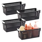 AccStation Transform your home into a haven of order and efficiency with this set of 4 black deep plastic basket, perfect for creating a customized organization system in your bathroom, laundry room, closet, mudroom, or any other space. The deep bathroom storage bin plastic black is designed to meet all your storage needs, making it easy to keep everything from cleaning supplies to toiletries neatly arranged. Each small plastic bin measures 11.5 x 5.25 x 5 inches, offering ample space while maintaining a compact footprint. Whether you're storing linens, makeup, towels, or other household items, these bins provide the perfect solution for decluttering and organizing your home. The sleek black design adds a touch of modern elegance, seamlessly blending with any decor style. Built-in handles on each organizing totes cabinet bathroom ensure that you can quickly and easily access your items, making these containers not only practical but also highly functional. No more rummaging through drawers or cabinets; with these storage baskets, everything you need is right at your fingertips. Ideal for use in the bathroom, these bins can neatly hold toiletries and makeup, keeping your countertop clear and your morning routine smooth. In the laundry room, the organizer for medicine cabinet is perfect for organizing detergents, fabric softeners, and other cleaning supplies, making laundry day a breeze. Use them in your closet to keep accessories, scarves, and other small items sorted and easily accessible. In the mudroom, these bins are great for storing shoes, gloves, and other outdoor essentials, ensuring a tidy and welcoming entryway. With this set of 4 small black laundry basket plastic, the possibilities are endless. Customize your organization system to fit your specific needs and enjoy a clutter-free home where everything has its place. Embrace the convenience and style of these versatile plastic baskets and experience the joy of an organized living space. 4-Pack Black Plastic Baskets for Organizing Bathroom, Laundry Room, Washroom Get Organized in Style: Transform your bathroom, washroom, laundry room, hall closet, or playroom with the sleek matte black plastic basket. Create a custom organization system that maximizes space and keeps everything tidy and easily accessible. Perfectly Sized: The plastic toiletry baskets 4 pack measure 11.5" x 5.25" x 5", ideal for organizing closets, cabinets, and spaces under or above your sink. Their versatile design ensures neat and efficient storage. Multi-Purpose Basket: Keep your home neat with our small medicine cabinet organizer, perfect for storing cosmetics, shampoos, hand towels, lotions, soap, medicine, hair accessories, and cleaning supplies. Ideal for an organized space Made to Last: For easy storage, stack the small plastic basket with handles inside one another when not in use. The handles provide convenient and easy accessibility, making them perfect for organizing your space efficiently What’s in the Pack: Includes four small black laundry basket plastic, perfect for organizing your space. These durable, versatile baskets are ideal for decluttering and keeping your home or office neat and tidy